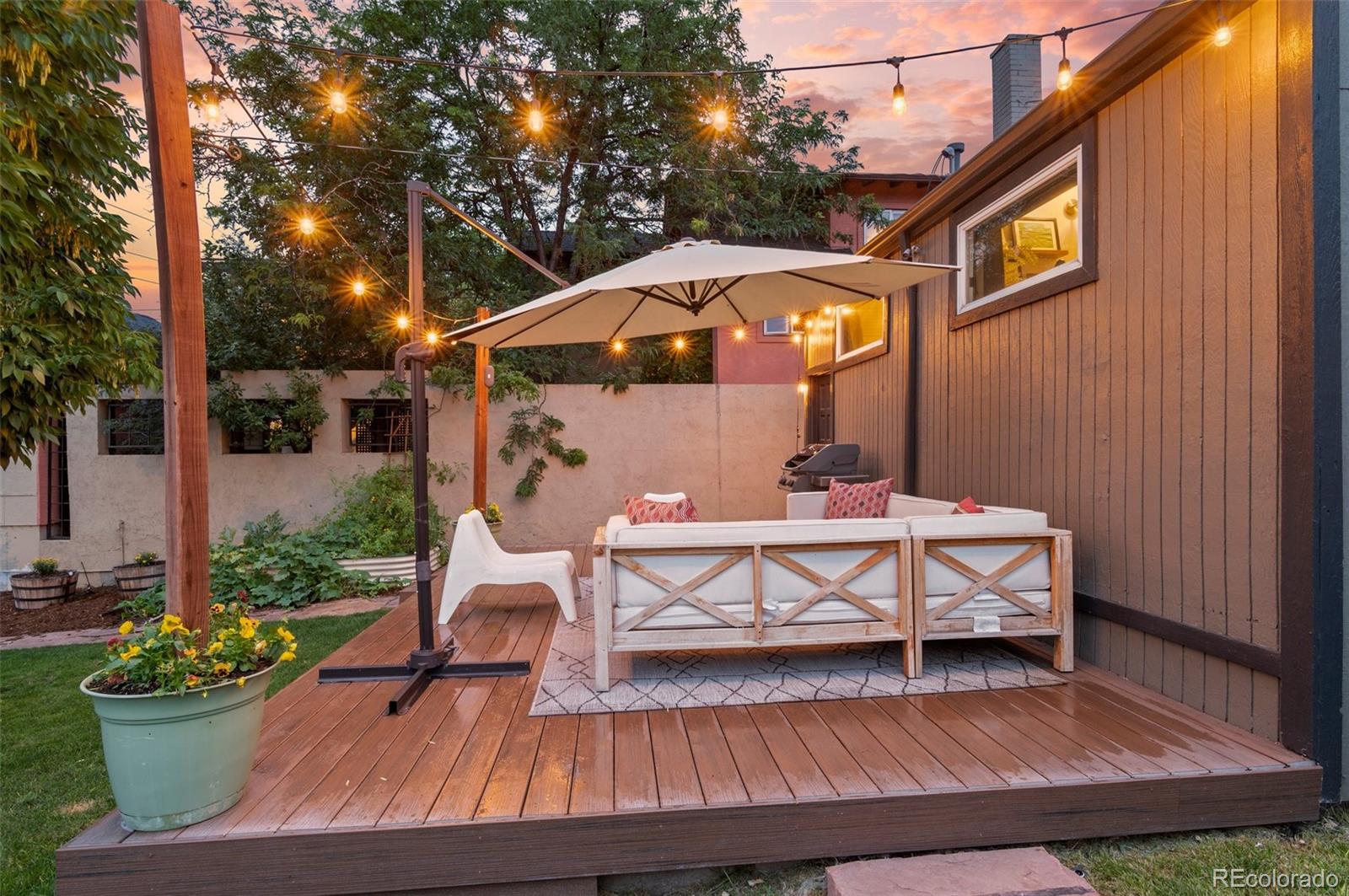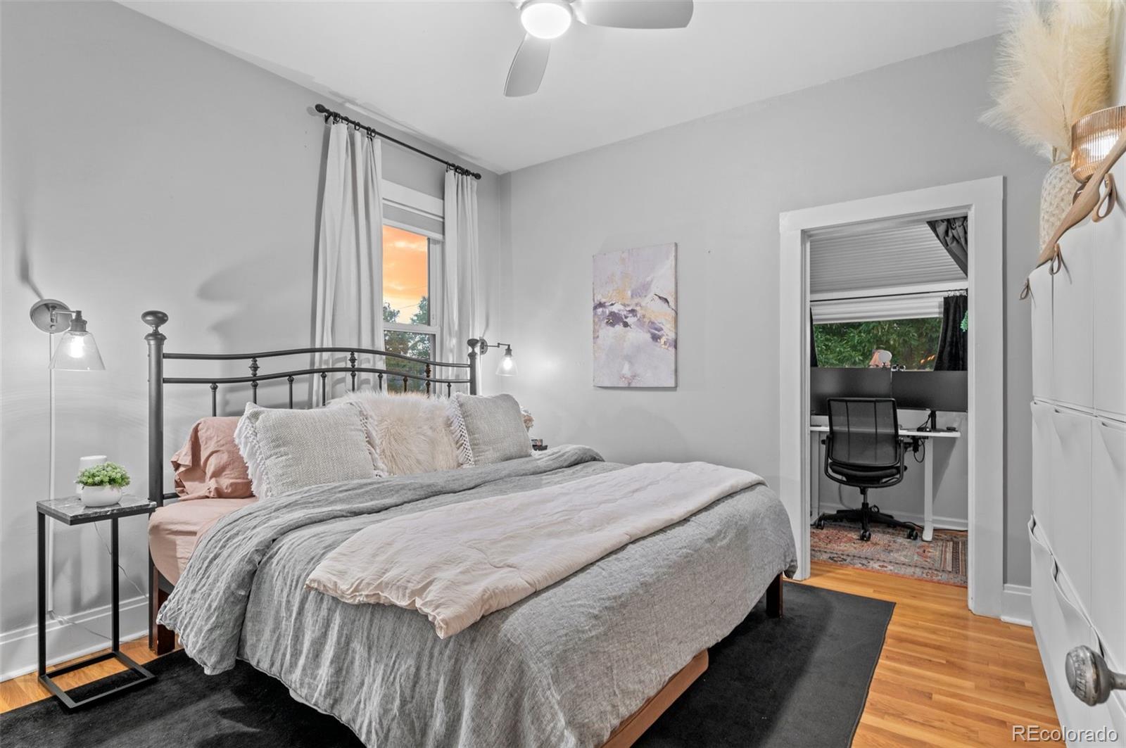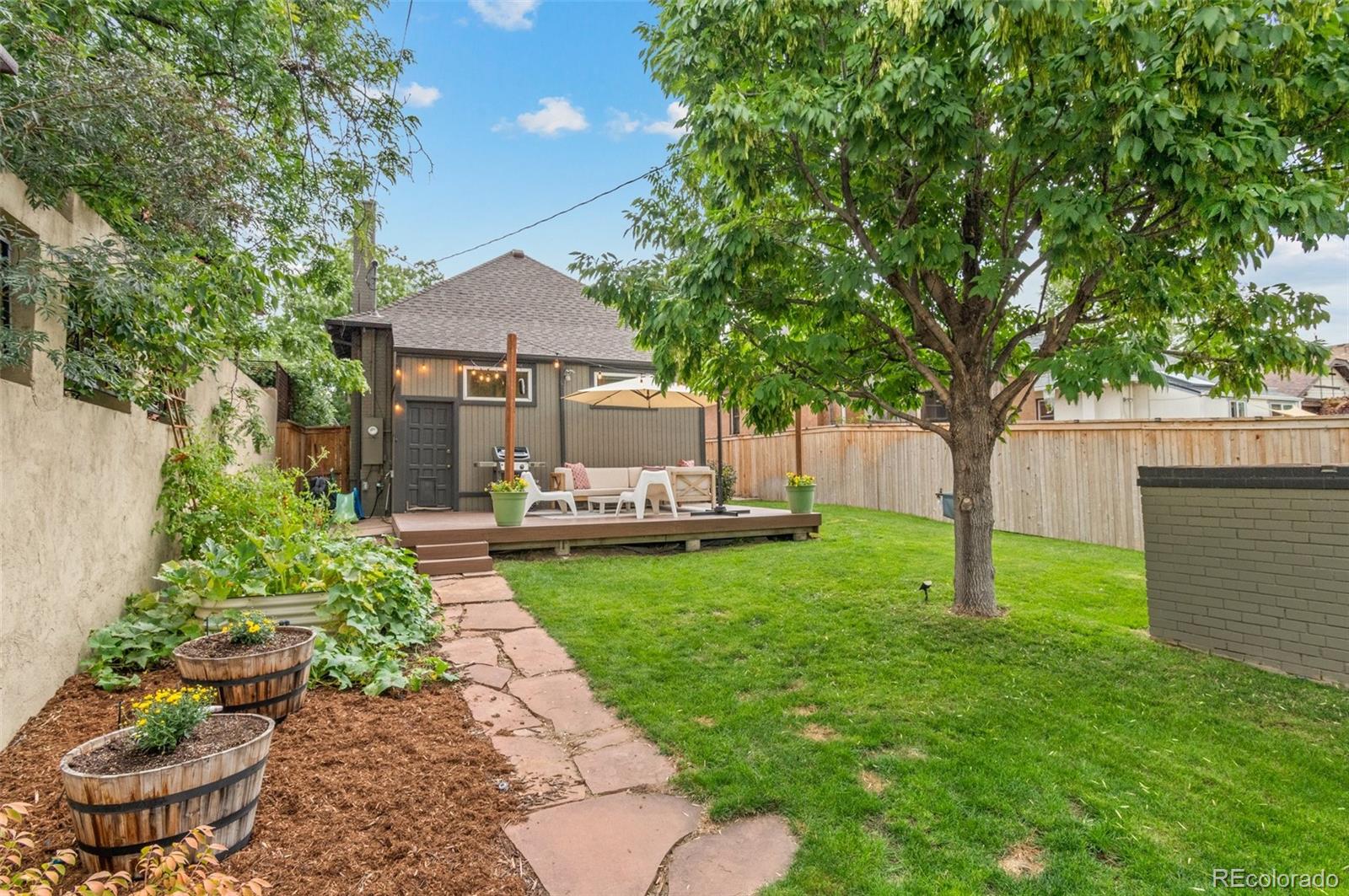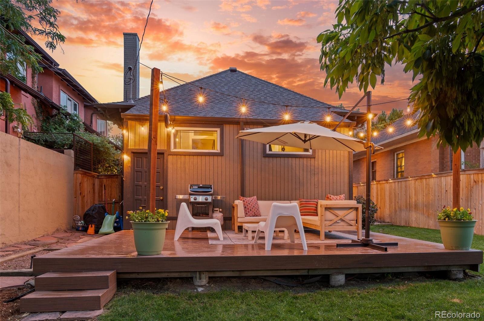 Discover this beautifully updated and meticulously maintained bungalow 2 blocks from Wash Park! Walking distance to a vibrant array of restaurants, the South Pearl district, and more, all while living on one of the most coveted blocks in Wash Park. Enter into a spacious living area, a rare find in Wash Park bungalows. The home boasts hardwood floors, fresh interior paint, and modern lighting throughout. Living space flows into charming dining area featuring original built-in window seat with ample storage. The kitchen, updated in 2021, shines with newly painted cabinets, stainless-steel appliances, stylish flooring, and a pantry. Primary bedroom has built-in storage and generous closet, while adjacent office space could flex to a walk-in closet or nursery. Remodeled bathroom features sleek tub/shower combo, gorgeous vanity, and tile flooring. The home exudes character with original stained-glass window, sculptured ceilings, and retro tile fireplace surround. Non-conforming basement bedroom, newly carpeted in 2023, offers versatile use as a family room, office, or gym. Additional basement bedroom has large closet and egress window. Historically, the main floor living area had another bedroom (removed by a previous owner). Walls could be reinstalled to restore it if desired, giving it easy potential to become a 4-bedroom home. Step outside to a private, fully fenced backyard with Trex deck, mature trees, and new fence (2021). Entire yard thoughtfully landscaped, featuring five mature trees planted in 2022, beautiful flower garden in front, and raised vegetable garden in back. One-car detached garage with alley access, storage shelves. Yard offers potential for garage expansion if needed. Additional upgrades include new exterior paint (2022), central AC (2018), and roof (2019). Easy access to running trails, playgrounds, and more. Light rail just five blocks away and downtown Denver a 10min drive. This exceptional home won't last long--schedule your visit today!