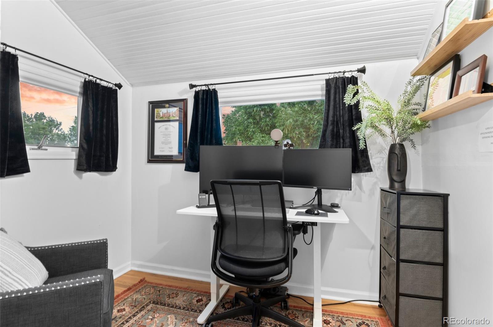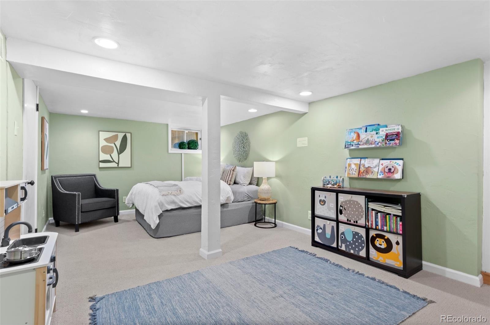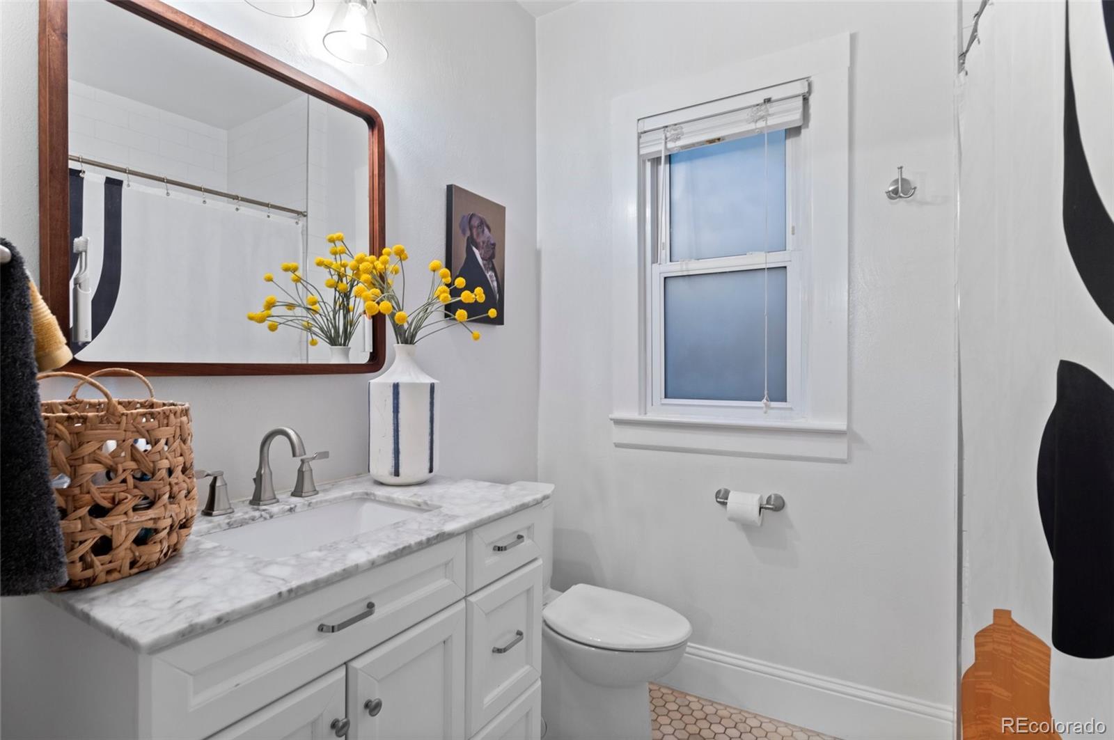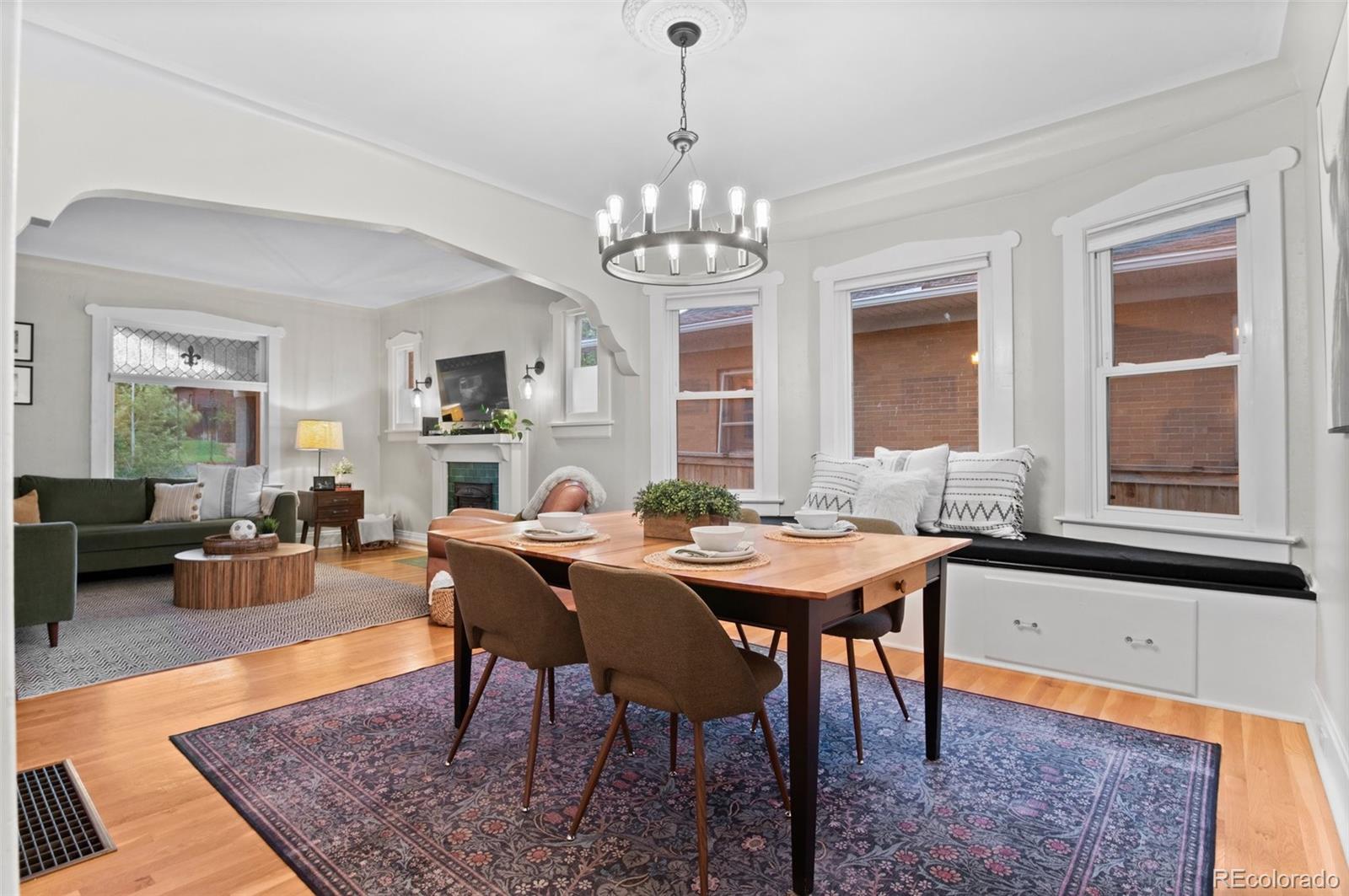 Discover this beautifully updated and meticulously maintained bungalow 2 blocks from Wash Park! Walking distance to a vibrant array of restaurants, the South Pearl district, and more, all while living on one of the most coveted blocks in Wash Park. Enter into a spacious living area, a rare find in Wash Park bungalows. The home boasts hardwood floors, fresh interior paint, and modern lighting throughout. Living space flows into charming dining area featuring original built-in window seat with ample storage. The kitchen, updated in 2021, shines with newly painted cabinets, stainless-steel appliances, stylish flooring, and a pantry. Primary bedroom has built-in storage and generous closet, while adjacent office space could flex to a walk-in closet or nursery. Remodeled bathroom features sleek tub/shower combo, gorgeous vanity, and tile flooring. The home exudes character with original stained-glass window, sculptured ceilings, and retro tile fireplace surround. Non-conforming basement bedroom, newly carpeted in 2023, offers versatile use as a family room, office, or gym. Additional basement bedroom has large closet and egress window. Historically, the main floor living area had another bedroom (removed by a previous owner). Walls could be reinstalled to restore it if desired, giving it easy potential to become a 4-bedroom home. Step outside to a private, fully fenced backyard with Trex deck, mature trees, and new fence (2021). Entire yard thoughtfully landscaped, featuring five mature trees planted in 2022, beautiful flower garden in front, and raised vegetable garden in back. One-car detached garage with alley access, storage shelves. Yard offers potential for garage expansion if needed. Additional upgrades include new exterior paint (2022), central AC (2018), and roof (2019). Easy access to running trails, playgrounds, and more. Light rail just five blocks away and downtown Denver a 10min drive. This exceptional home won't last long--schedule your visit today!