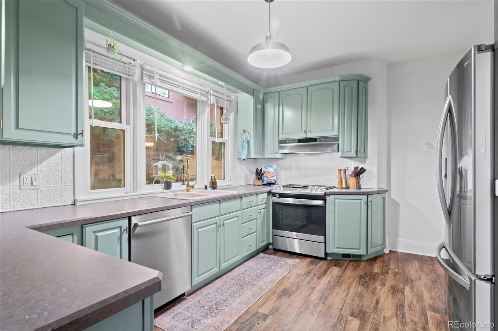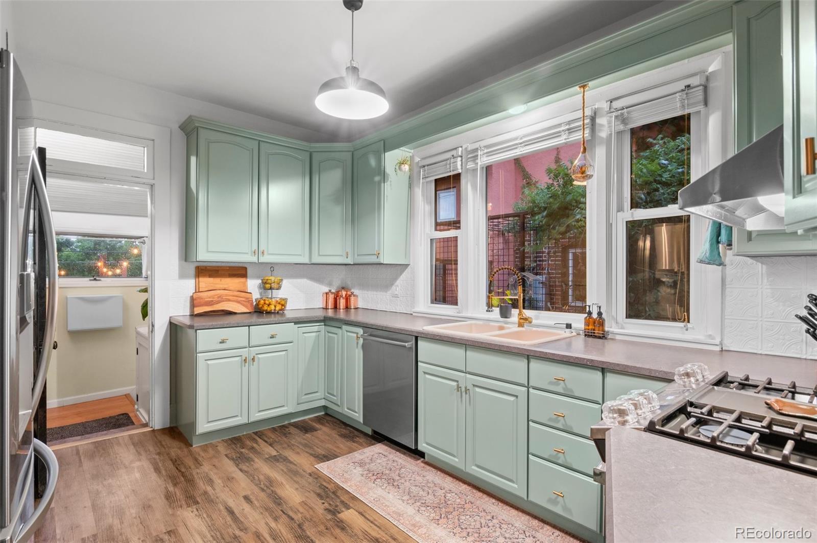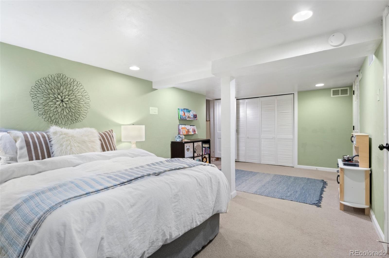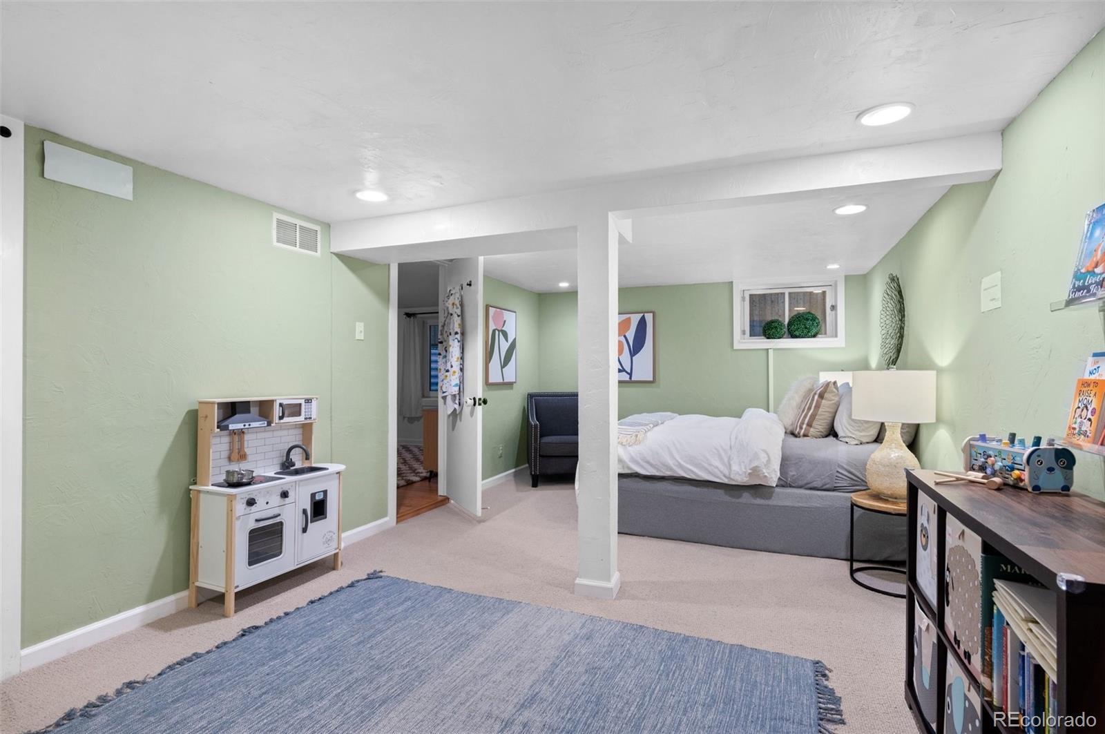 Discover this beautifully updated and meticulously maintained bungalow 2 blocks from Wash Park! Walking distance to a vibrant array of restaurants, the South Pearl district, and more, all while living on one of the most coveted blocks in Wash Park. Enter into a spacious living area, a rare find in Wash Park bungalows. The home boasts hardwood floors, fresh interior paint, and modern lighting throughout. Living space flows into charming dining area featuring original built-in window seat with ample storage. The kitchen, updated in 2021, shines with newly painted cabinets, stainless-steel appliances, stylish flooring, and a pantry. Primary bedroom has built-in storage and generous closet, while adjacent office space could flex to a walk-in closet or nursery. Remodeled bathroom features sleek tub/shower combo, gorgeous vanity, and tile flooring. The home exudes character with original stained-glass window, sculptured ceilings, and retro tile fireplace surround. Non-conforming basement bedroom, newly carpeted in 2023, offers versatile use as a family room, office, or gym. Additional basement bedroom has large closet and egress window. Historically, the main floor living area had another bedroom (removed by a previous owner). Walls could be reinstalled to restore it if desired, giving it easy potential to become a 4-bedroom home. Step outside to a private, fully fenced backyard with Trex deck, mature trees, and new fence (2021). Entire yard thoughtfully landscaped, featuring five mature trees planted in 2022, beautiful flower garden in front, and raised vegetable garden in back. One-car detached garage with alley access, storage shelves. Yard offers potential for garage expansion if needed. Additional upgrades include new exterior paint (2022), central AC (2018), and roof (2019). Easy access to running trails, playgrounds, and more. Light rail just five blocks away and downtown Denver a 10min drive. This exceptional home won't last long--schedule your visit today!