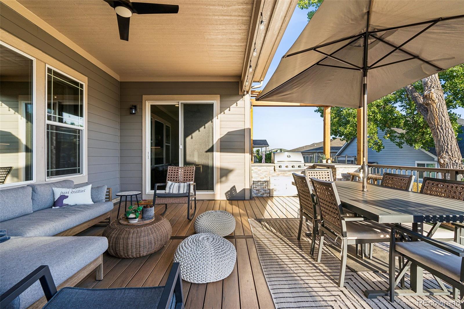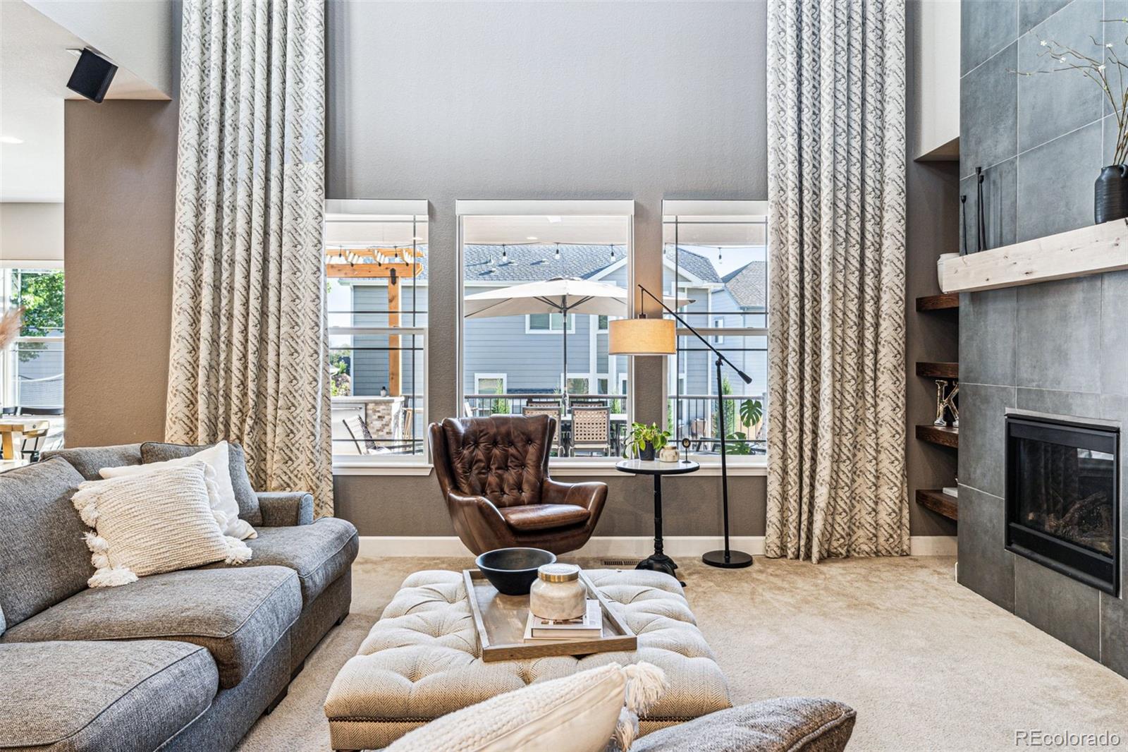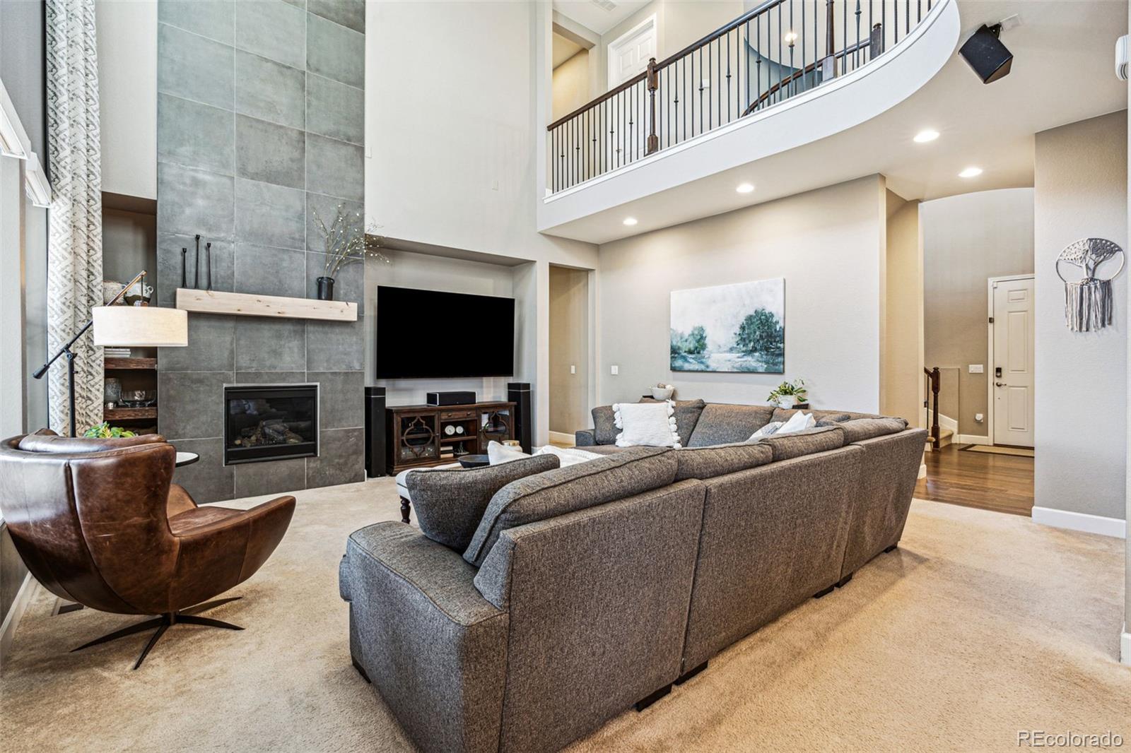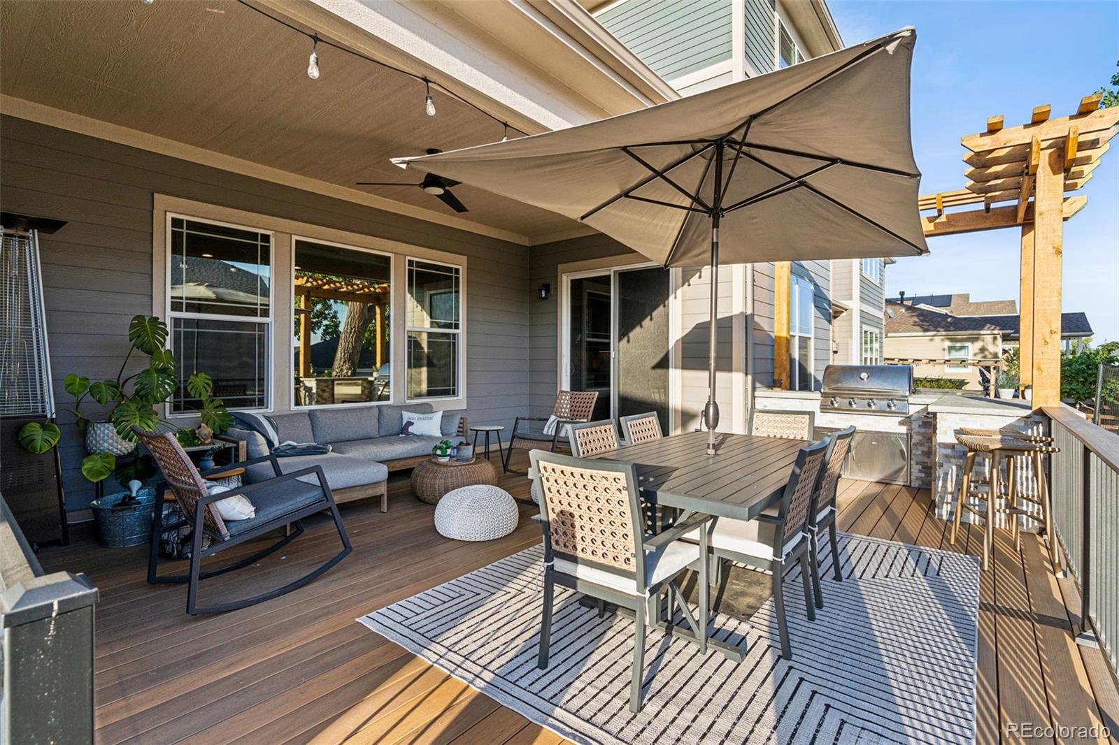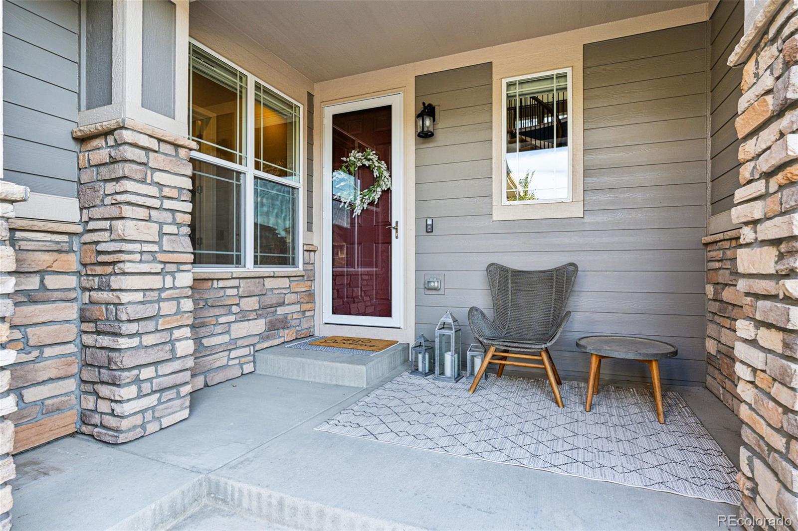 Welcome to this exceptional home, featuring the largest and most desirable floor plan in the community. Nestled in a beautifully manicured and tranquil neighborhood, it boasts striking curb appeal and a grand two-story entry. The main level offers a spacious open kitchen with a large island, seating, a double oven, gas range, and both a butler's and walk-in pantry. The dramatic two-story living room is bathed in natural light from floor-to-ceiling windows and features a gas fireplace with a tile surround. Also on this level are a formal dining room, an eat-in dining area, a private office with French doors and custom built-ins, a large guest suite with an ensuite bath, a well-designed mudroom with built-ins, and a powder room. Upstairs, the expansive primary suite showcases breathtaking southwest views, a luxurious five-piece ensuite bath, and a walk-in closet. Two additional spacious bedrooms share a Jack-and-Jill bath with dual sinks, while a versatile loft space could easily be enclosed for an additional bedroom. The unfinished basement offers incredible potential with a fantastic layout for future finishing and is currently utilized as a gym, play space, and storage area. Step outside into a true Colorado dream backyard--featuring a large, partially covered composite deck, a built-in outdoor kitchen, a putting green, and stunning Front Range views. The oversized three-car garage provides ample parking and storage. Additional highlights include a brand-new dishwasher, elegant light fixtures, Hunter Douglas electronic window treatments, under-cabinet lighting, and a smart thermostat. Solar panels that bring the electric bill to an average of about $30/month! This home truly has it all--located in one of Arvada's most sought-after neighborhoods, where opportunities like this are rare.