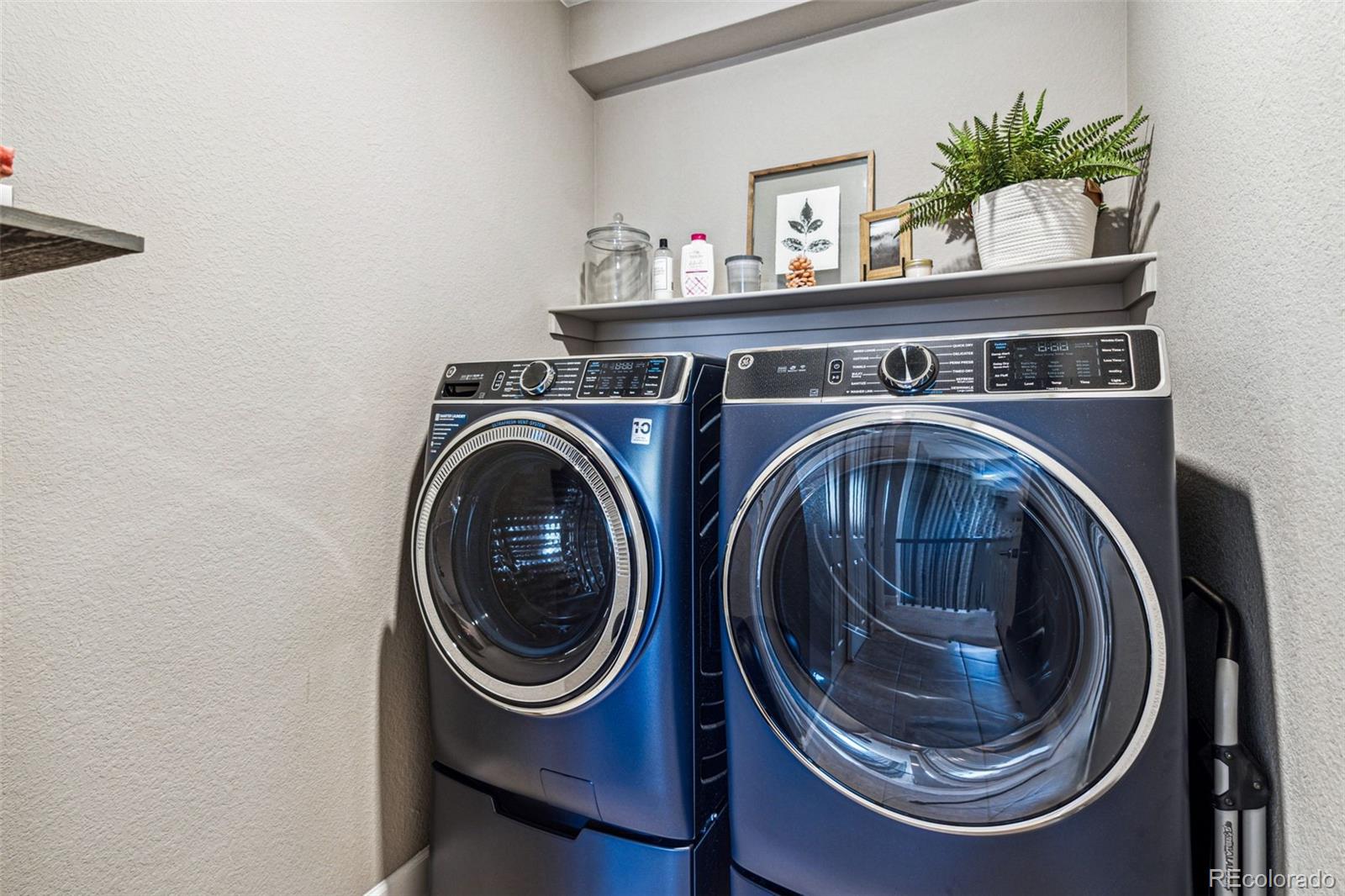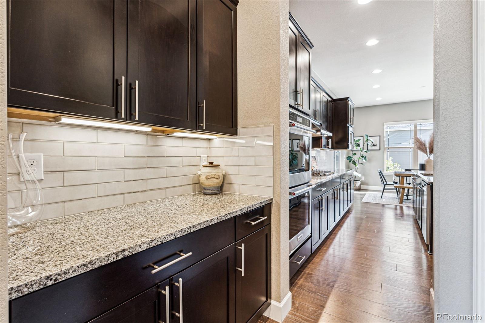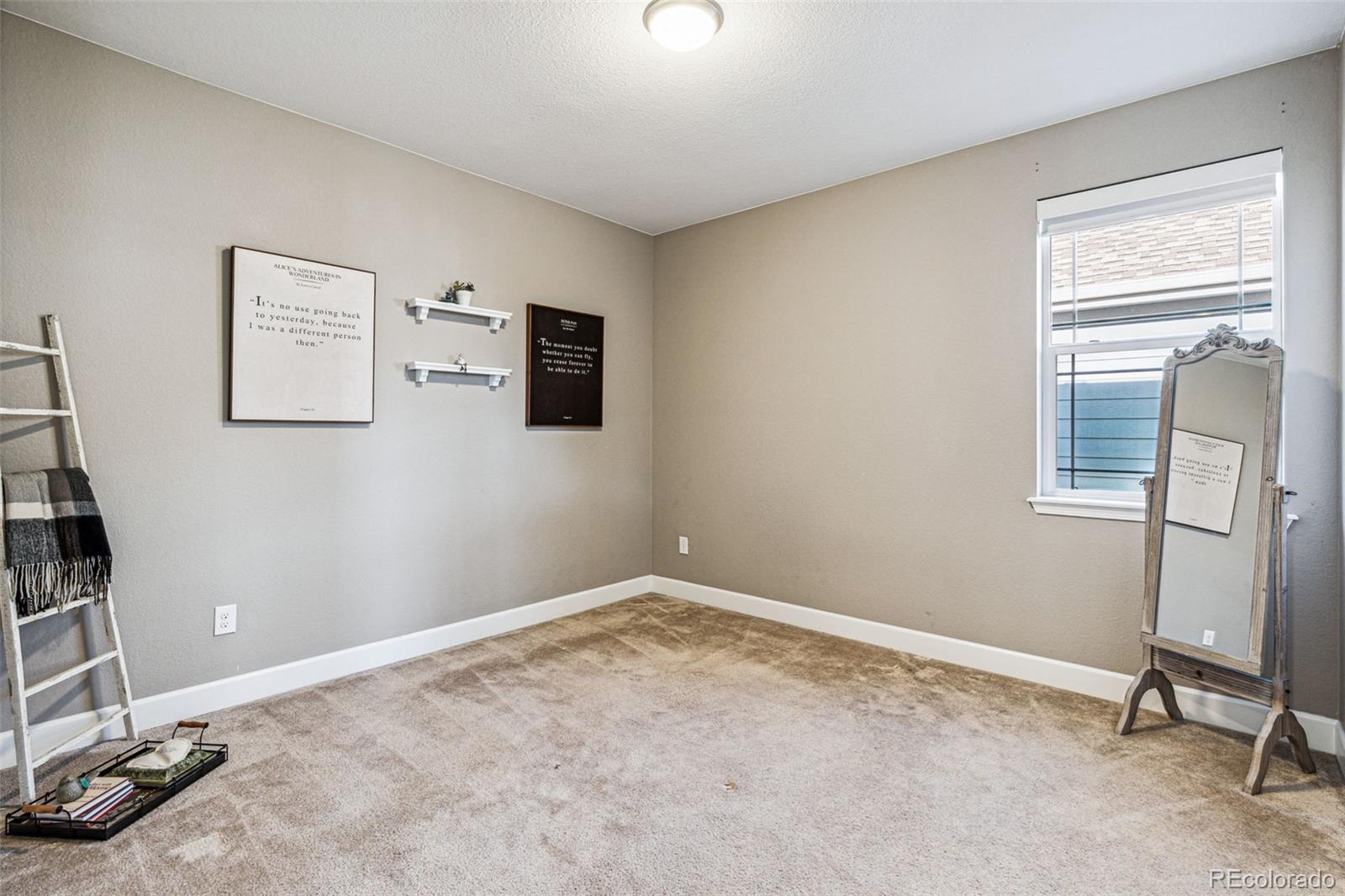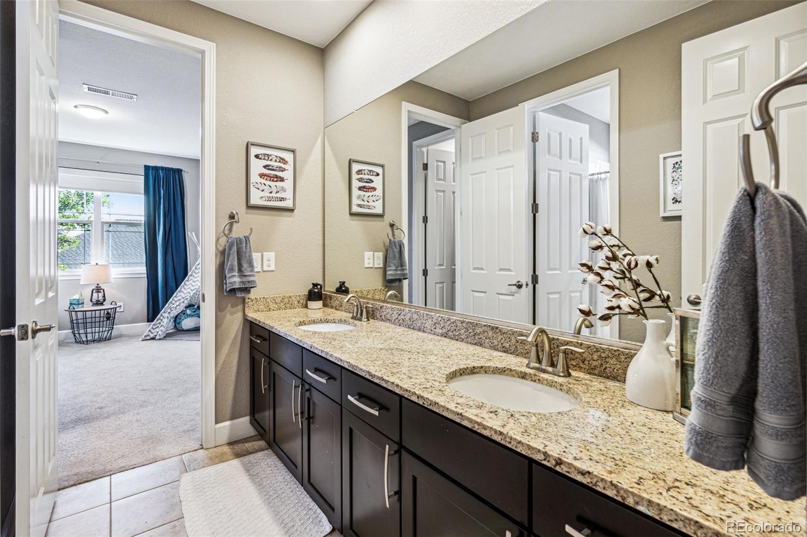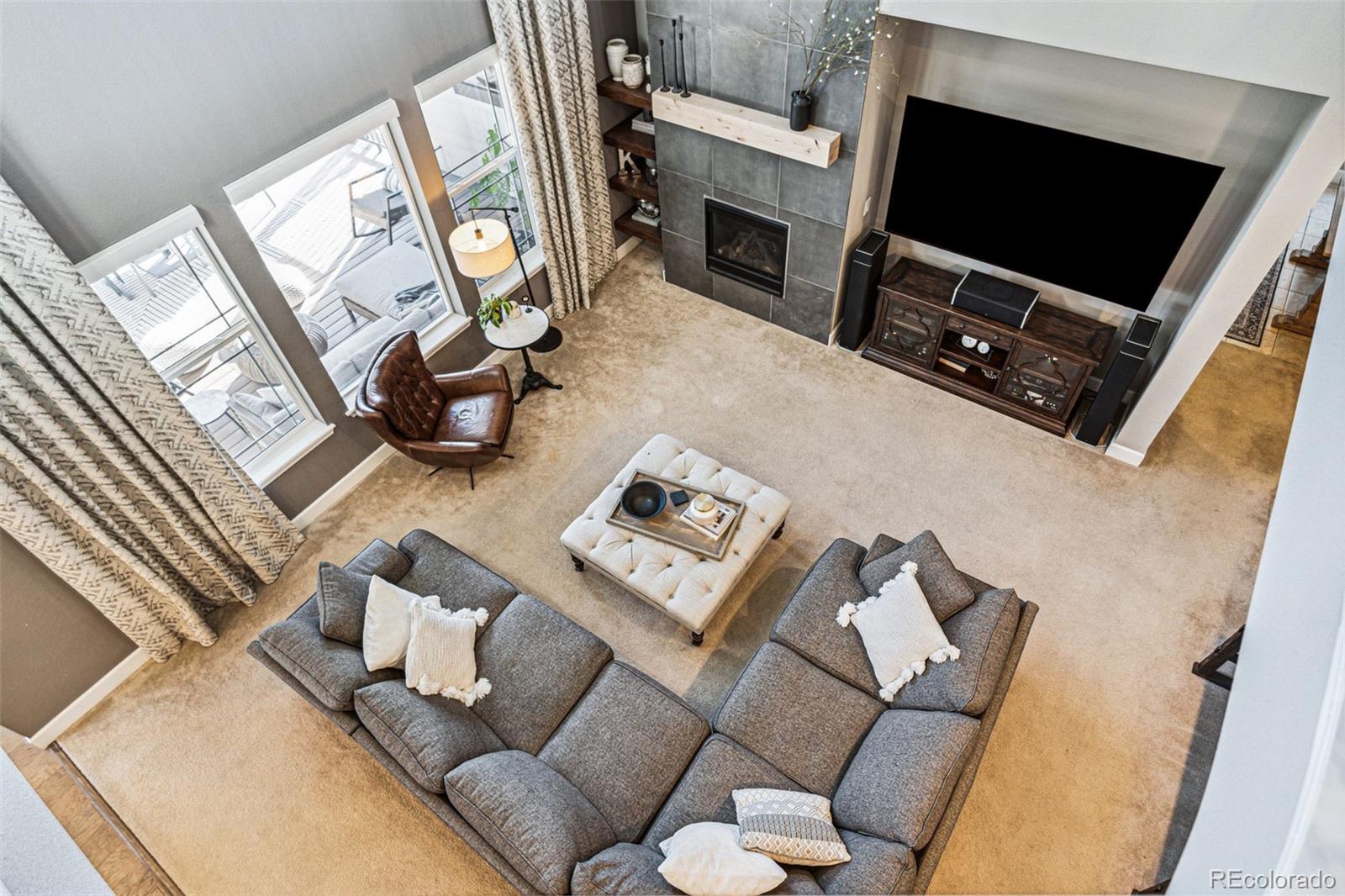Welcome to this exceptional home, featuring the largest and most desirable floor plan in the community. Nestled in a beautifully manicured and tranquil neighborhood, it boasts striking curb appeal and a grand two-story entry. The main level offers a spacious open kitchen with a large island, seating, a double oven, gas range, and both a butler's and walk-in pantry. The dramatic two-story living room is bathed in natural light from floor-to-ceiling windows and features a gas fireplace with a tile surround. Also on this level are a formal dining room, an eat-in dining area, a private office with French doors and custom built-ins, a large guest suite with an ensuite bath, a well-designed mudroom with built-ins, and a powder room. Upstairs, the expansive primary suite showcases breathtaking southwest views, a luxurious five-piece ensuite bath, and a walk-in closet. Two additional spacious bedrooms share a Jack-and-Jill bath with dual sinks, while a versatile loft space could easily be enclosed for an additional bedroom. The unfinished basement offers incredible potential with a fantastic layout for future finishing and is currently utilized as a gym, play space, and storage area. Step outside into a true Colorado dream backyard--featuring a large, partially covered composite deck, a built-in outdoor kitchen, a putting green, and stunning Front Range views. The oversized three-car garage provides ample parking and storage. Additional highlights include a brand-new dishwasher, elegant light fixtures, Hunter Douglas electronic window treatments, under-cabinet lighting, and a smart thermostat. Solar panels that bring the electric bill to an average of about $30/month! This home truly has it all--located in one of Arvada's most sought-after neighborhoods, where opportunities like this are rare.