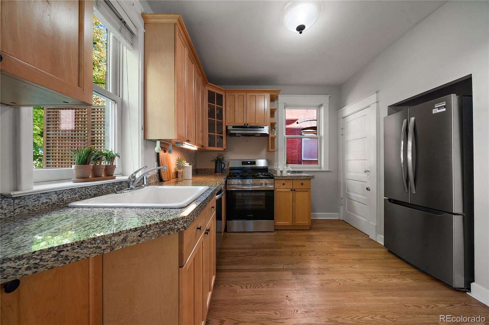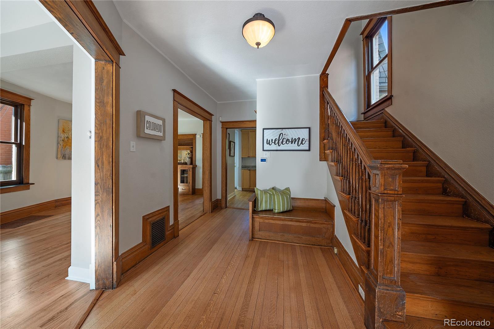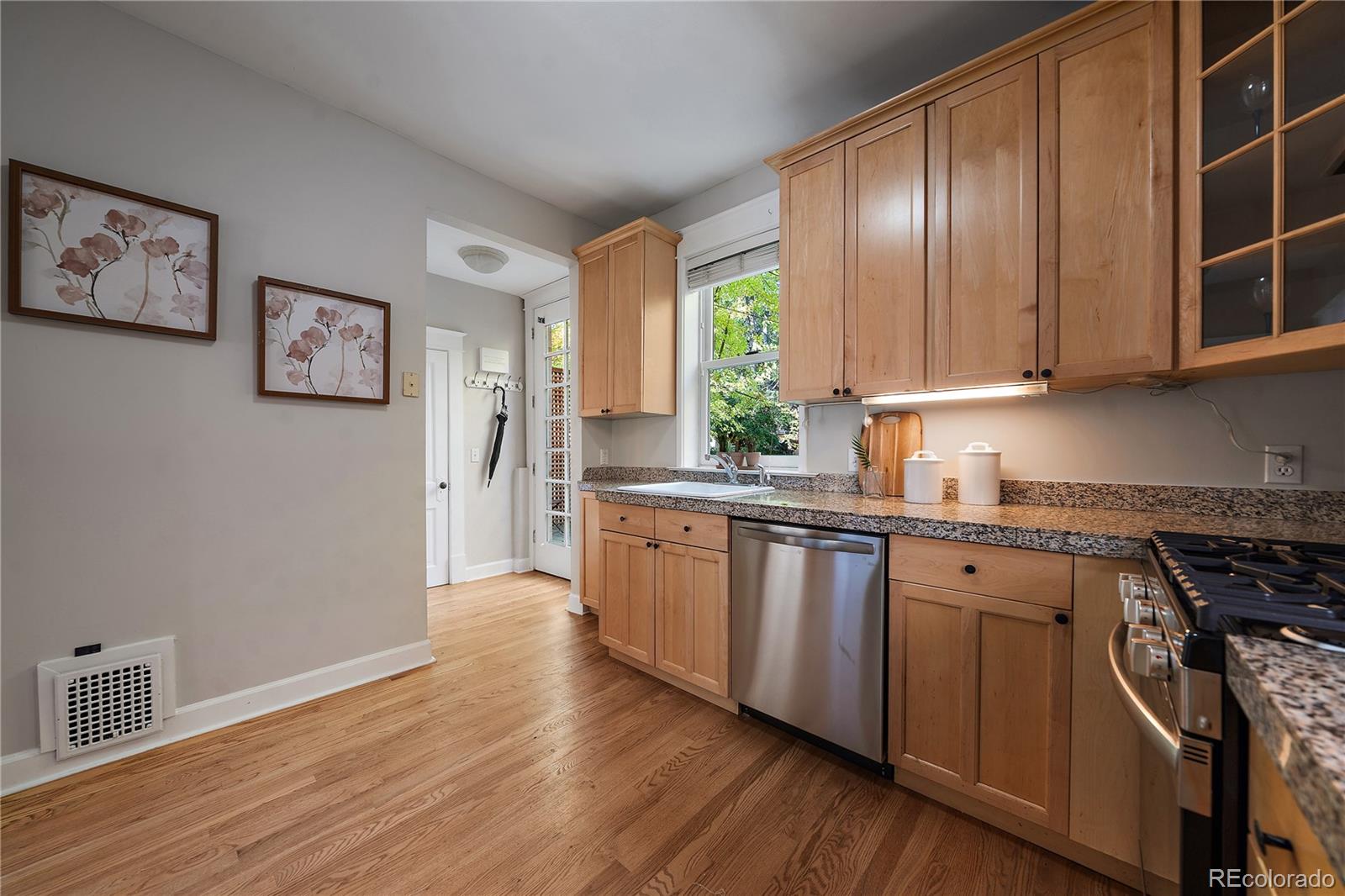 BUILT IN 1906, THIS BEAUTIFULLY UPDATED DUTCH COLONIAL HOME IN THE HEART OF CONGRESS PARK IS READY FOR ITS NEXT FORTUNATE OWNER! Meticulously maintained, this 3 bedroom, 3 bath home showcases charming original architectural details, from intricate wood trim to the classic built-in hutch and newly refinished hardwood floors! Step inside to a bright, welcoming foyer that leads to a spacious living room, featuring a large picture window and a stunning decorative brick fireplace! The updated kitchen boasts brand-new stainless steel appliances, granite countertops, maple cabinets and new hardwood floors, while the deep, single-basin sink offers a view of the professionally landscaped backyard! The adjacent dining area is perfect for family meals or entertaining guests! The main floor also includes a convenient powder room and fresh paint throughout! Retreat to the luxurious primary bedroom with vaulted ceilings, where you can wake up to natural sunlight! The nearby full bathroom is adorned with modern fixtures and a jetted tub, creating a serene, spa-like experience! Two additional well-appointed bedrooms share a Jack-and-Jill bathroom, offering comfort and space for family or guests! This home's thoughtful layout allows natural light to flow freely, accentuating its unique history and character! Step outside to your private backyard oasis, ideal for entertaining or relaxing! The newly painted, expansive deck is perfect for summer barbecues, morning coffee and evening cocktails, while the landscaped yard provides ample space for kids and pets to play! Recent updates include a new furnace, A/C, and tankless water heater! One car detached garage and one car carport! Perfectly located between Congress Park, Cheesman & City Park, you're just minutes from trendy shops, dining along 12th Ave., Cherry Creek North & the new 9 + CO with a movie theater! 92 Walk Score!! Trader Joe's & Sprouts! Teller Elementary & East High! Botanic Gardens & Carla Madison Rec Center!