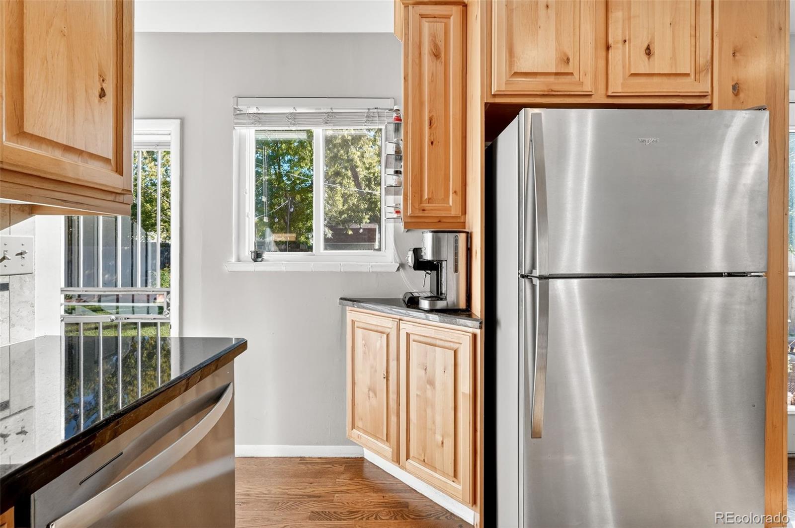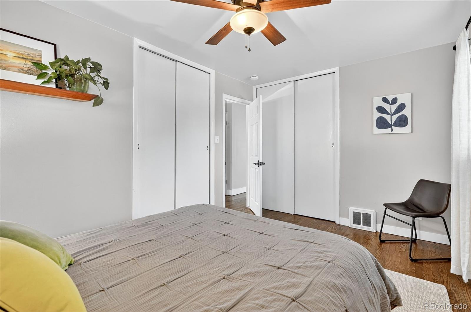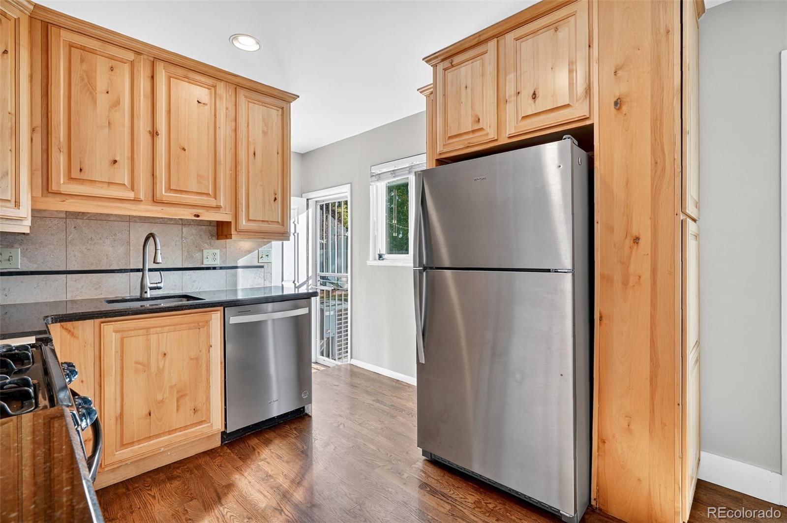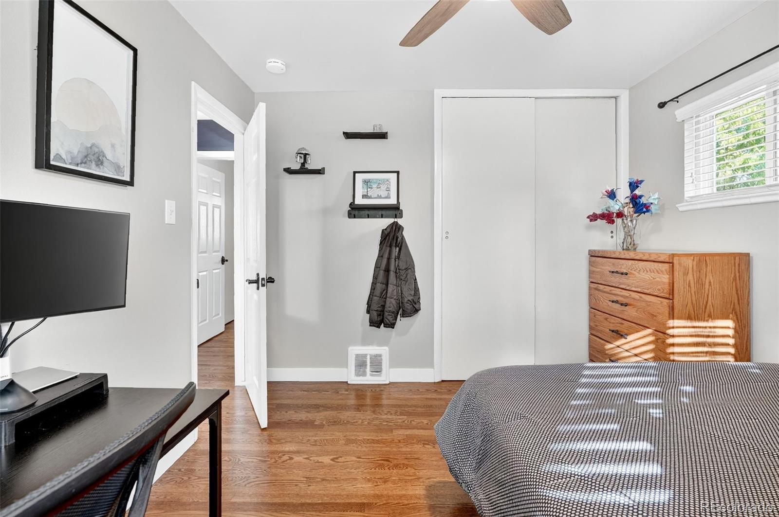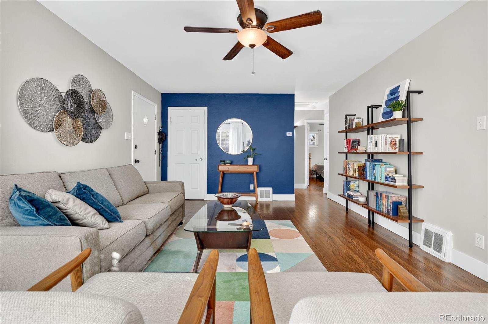 Welcome to this classic Virginia Village ranch, where timeless charm meets thoughtful modern updates. The main level features a spacious living room with large picture windows that fill the home with natural light and showcase the rich, dark-stained hardwood floors. The open flow leads seamlessly to the dining area and kitchen, with convenient access to the back patio for easy indoor-outdoor living. Two inviting bedrooms and a full bath complete this level. Downstairs offers a generous secondary living area, ideal for movie nights or a playroom, along with two additional bedrooms: a large en suite bedroom and a non-conforming fourth bedroom that works beautifully as a guest room or home office. A dedicated laundry and storage room add functionality and flexibility. Recent upgrades include a brand-new water heater, refrigerator, dishwasher, carpet, and interior paint. Outside, enjoy a private and expansive backyard perfect for morning coffee, entertaining, or simply soaking up the sunshine. A large shed provides extra storage, and the driveway offers ample off-street parking. All of this just minutes from Denver's most sought-after neighborhoods including Platt Park, Wash Park, and Cherry Creek. Beautifully maintained and truly move-in ready.