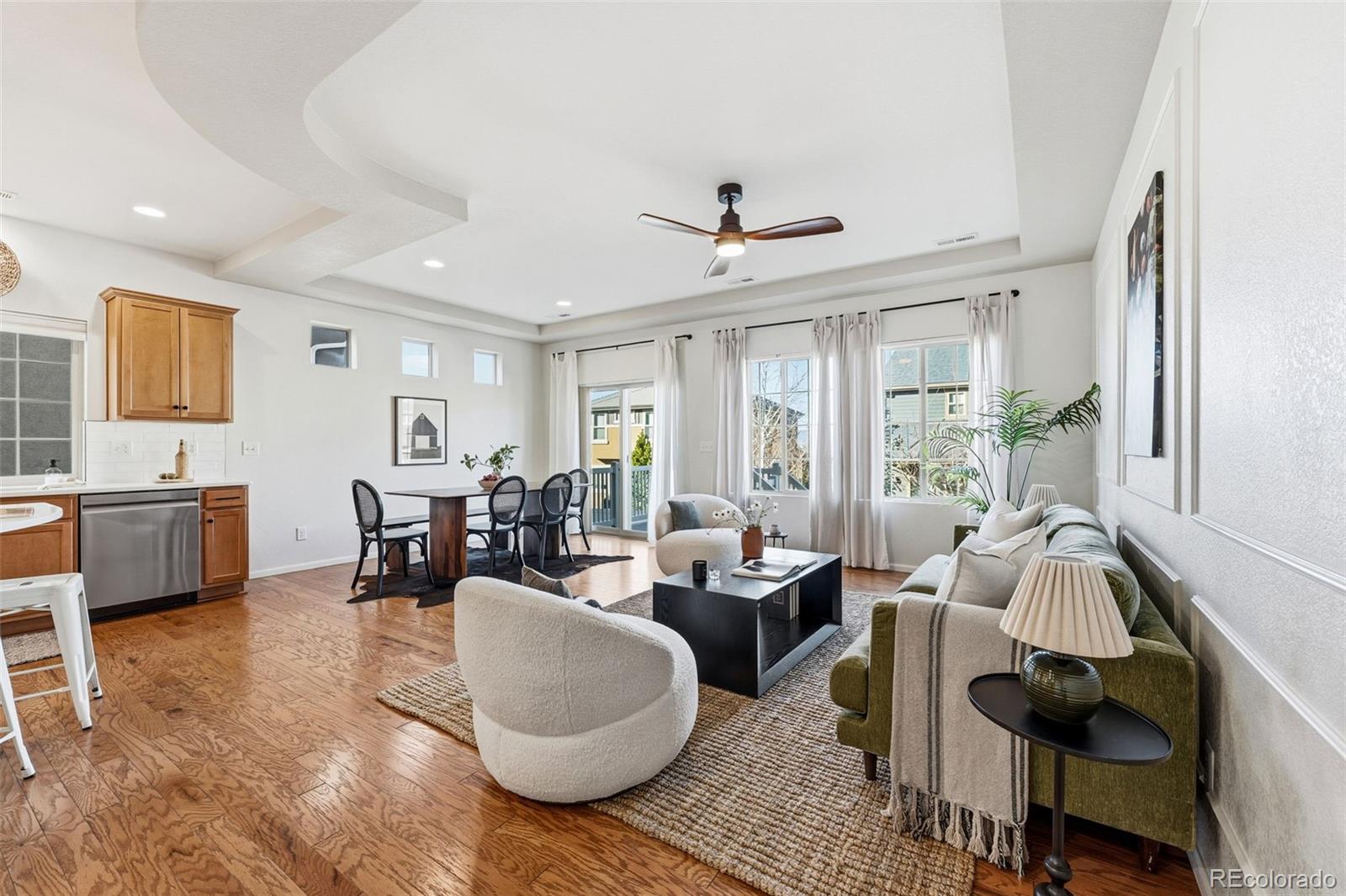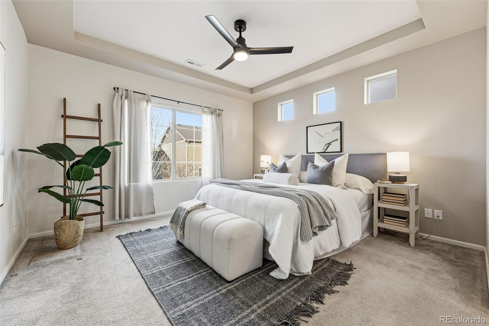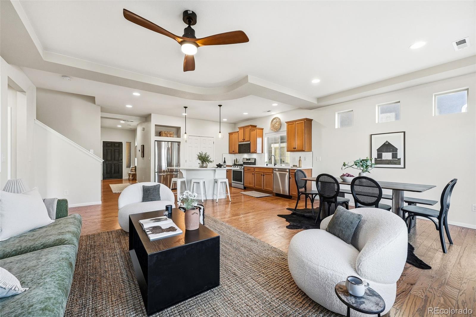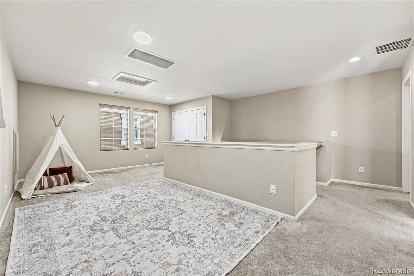 Welcome to this beautiful single-family home in the sought-after Erie Highlands neighborhood. This spacious property offers 4 bedrooms, 3.5 bathrooms, and a rare fully finished basement, providing ample living space and flexibility for every lifestyle. The model is notorious for flying off the market (and are rare to hit the market!). The main level features an open-concept layout that seamlessly connects the living room, dining area, and kitchen, perfect for entertaining or everyday living. The kitchen showcases new white quartz countertops, stainless steel appliances, and warm wood cabinetry for a timeless, updated look. The main floor primary suite includes an en suite bathroom; a second bedroom and full bath complete this level. Upstairs, you'll find another bedroom, a half bath, and a versatile loft area ideal for a home office, playroom, or cozy retreat. The finished basement adds incredible functionality with a fourth bedroom, a full bathroom, comfortable living area with a fireplace, two large storage areas, and built-in cabinetry; great for guests, multigenerational living, or a recreation space. Step outside to the peaceful backyard, featuring a deck and a new stone patio, plus ample grass space. Enjoy all that Erie Highlands offers, including parks, trails, community pool, and convenient access to shopping and dining. A two car garage attached with luxurious epoxy coated floors. Additional perks: New roof (2023), new stucco and exterior paint (2022)!