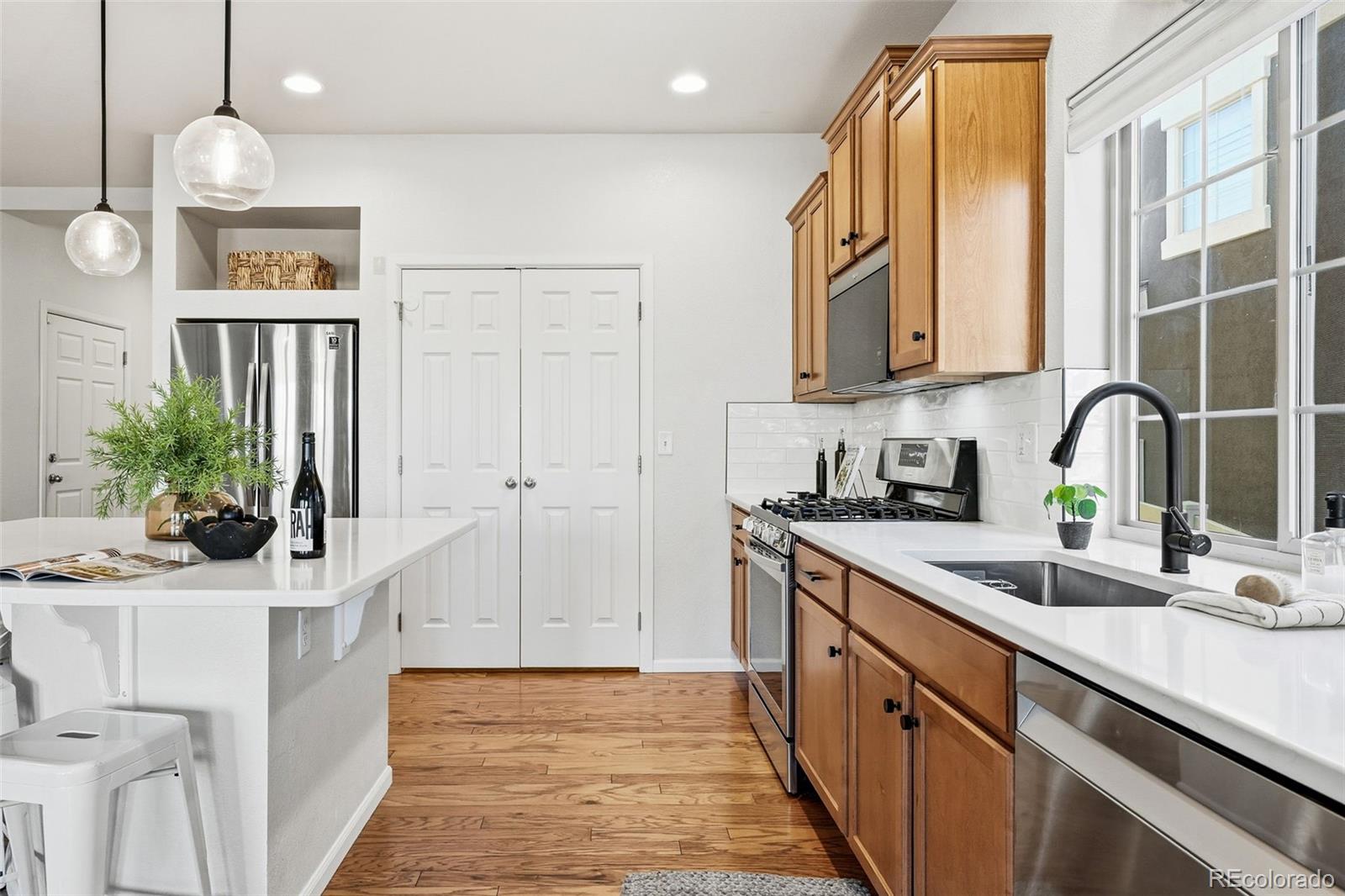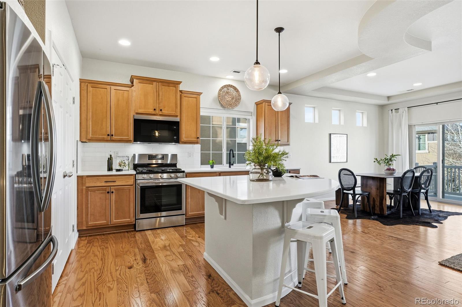 *10K CONCESSION TO BUYER will be offered if we receive an acceptable offer by 2/9!* Welcome to this beautiful single-family home in the sought-after Erie Highlands neighborhood. This spacious property offers 4 bedrooms, 3.5 bathrooms, and a rare fully finished basement, providing ample living space and flexibility for every lifestyle. The model is notorious for flying off the market (and are rare to hit the market!). The main level features an open-concept layout that seamlessly connects the living room, dining area, and kitchen, perfect for entertaining or everyday living. The kitchen showcases new white quartz countertops, stainless steel appliances, and warm wood cabinetry for a timeless, updated look. The main floor primary suite includes an en suite bathroom; a second bedroom and full bath complete this level. Upstairs, you'll find another bedroom, a half bath, and a versatile loft area ideal for a home office, playroom, or cozy retreat. The finished basement adds incredible functionality with a fourth bedroom, a full bathroom, comfortable living area with a fireplace, two large storage areas, and built-in cabinetry; great for guests, multigenerational living, or a recreation space. Step outside to the peaceful backyard, featuring a deck and a new stone patio, plus ample grass space. Enjoy all that Erie Highlands offers, including parks, trails, community pool, and convenient access to shopping and dining. A two car garage attached with luxurious epoxy coated floors. Additional perks: New roof (2023), new stucco and exterior paint (2022)!