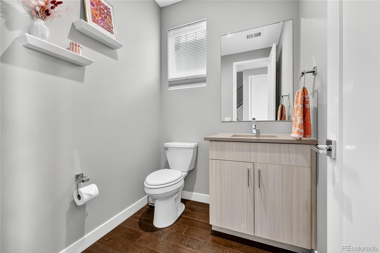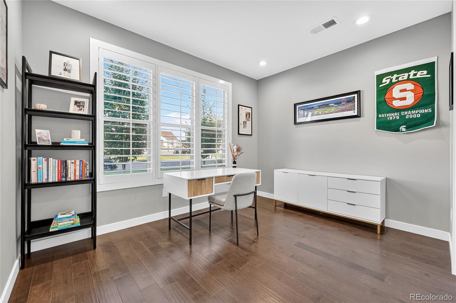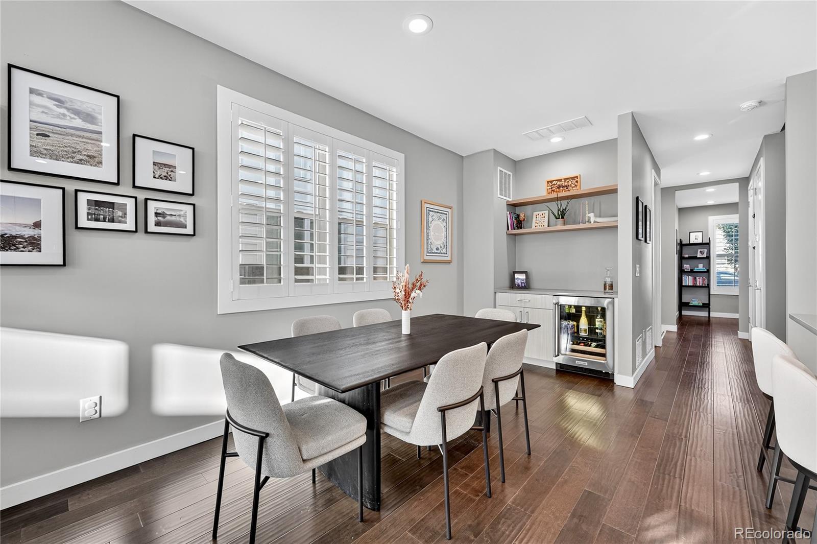 Welcome to this better-than-new half duplex in the heart of Overland, just minutes from Platt Park. Thoughtfully designed with a superior floor plan and timeless, elevated finishes, this home stands out among similar properties. From the moment you arrive, the modern curb appeal and professional landscaping make a lasting impression. Step inside to a welcoming entryway--perfect for greeting guests or slipping off your shoes--before entering the bright, open-concept living, dining, and kitchen area. Beautiful dark engineered hardwood floors, expansive windows, and light cabinetry create a striking yet inviting aesthetic. Custom high-end window treatments add a refined touch. The main level also features a versatile office or nonconforming fourth bedroom, a powder room, a convenient mudroom, and sliding doors that lead to the private backyard with new turf and a two-car garage. Upstairs, you'll find three spacious bedrooms and two full bathrooms. The primary suite offers a luxurious retreat with a spa-like bath featuring dual sinks and a generous walk-in closet. Secondary bedrooms are equally well-appointed, sharing a stylish full bathroom. All bedrooms are finished with premium wool carpeting for an added sense of comfort. A laundry room, with washer and dryer included, on this level as well for extra ease. Two car garage completes this property. Situated in a neighborhood with incredible access to Denver's hottest destinations--and with no HOA--this home offers both lifestyle and lasting value.