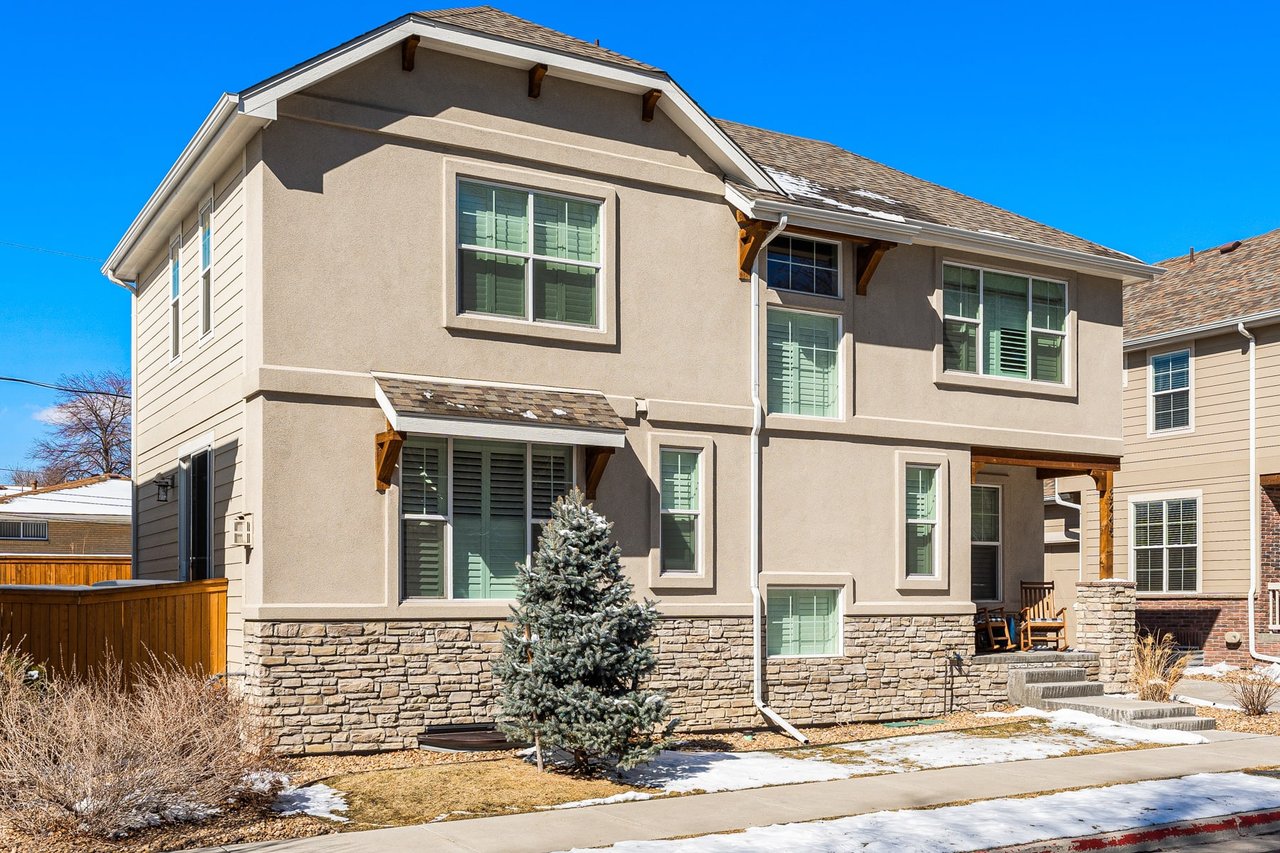 Welcome to this beautiful move-in ready Wheat Ridge home! From the charming curb appeal, to the great layout, and timeless finishes, this home has so much to offer. Pleasant newer build community. Main level includes a living room, dining room, kitchen, powder room, and mudroom/laundry room. Hardwood floors flow throughout this level. Large kitchen with stainless steel appliances, gas range, granite countertops, an island and ample cabinet and counter space. Opens to the dining room and flows out to the patio and backyard. Three bedrooms on the second level. Hardwood floors in the bedrooms. Primary en suite bathroom. Bonus features such as plantation shutters, coated garage floor, bench and shelves in entry, tankless water heater, dual zoned heating and cooling, Ring doorbell, electronic lock on garage door, Nest thermostat, blackout shades in primary bedroom and in living room. Perfect basement ready to finish with HUGE egress windows and stubbed for a bathroom. Lovely backyard with patio and large grassy space. Back fence maintained by the HOA. So many appealing features at a great price!