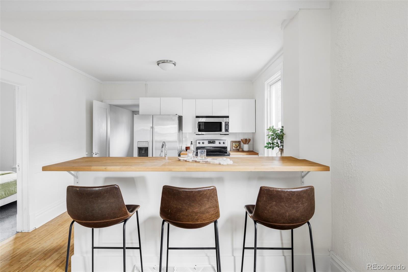 Welcome to this classic historic duplex in Villa Park. Southern side of the duplex so it gets lots of light throughout. Charming curb appeal and darling front porch. Two bedrooms and one full bathroom. High ceilings, bamboo floors, and open concept living/dining/kitchen. New water heater in 2025, new interior paint 2025, butcher block countertops, clawfoot bathtub. Private backyard that features a deck, yard, and gardening bed. 1 car detached garage (over-sized). Basement serves as a great place for storage. Incredible price for this type of product...appraised for $420,000 in 2023. This area is only getting better and better. The attached unit next door is for sale (1 bd 1 ba - 664 Meade) if you have interest in owning the ENTIRE duplex!