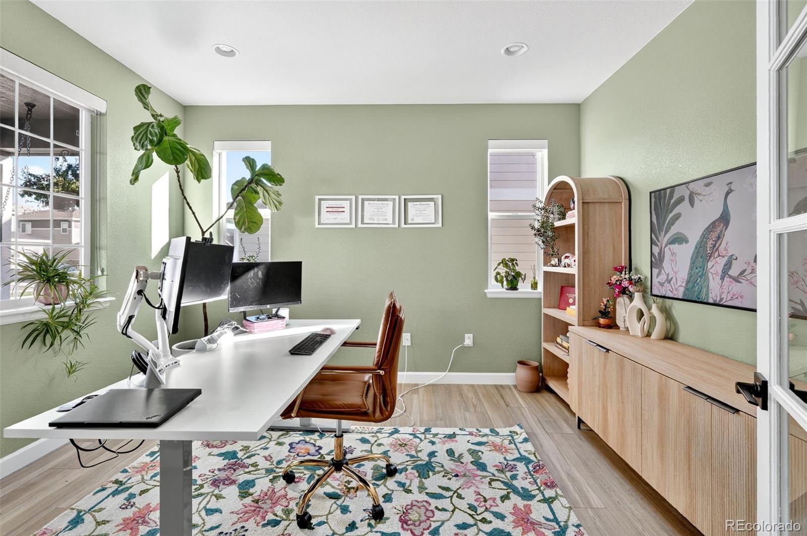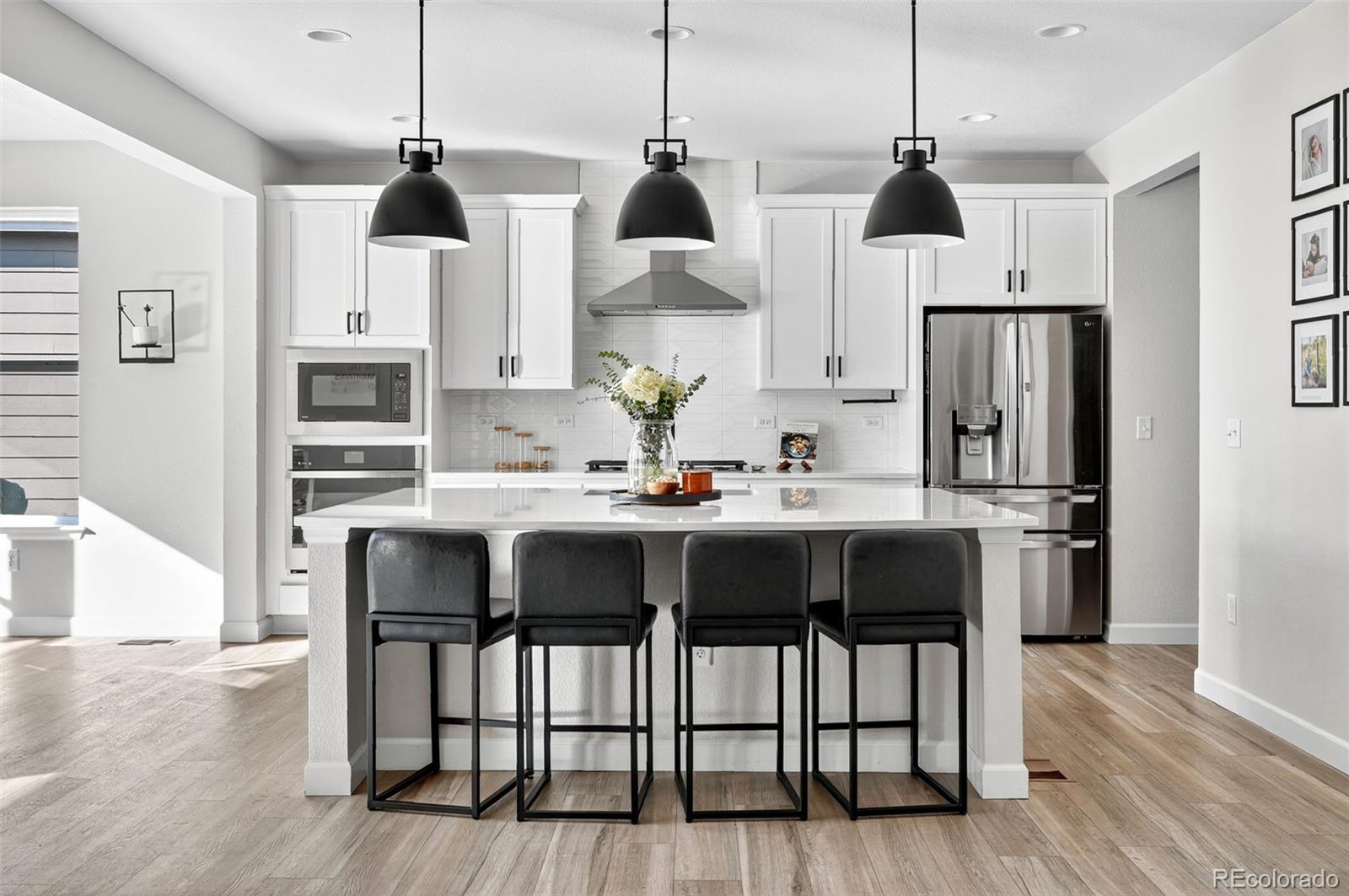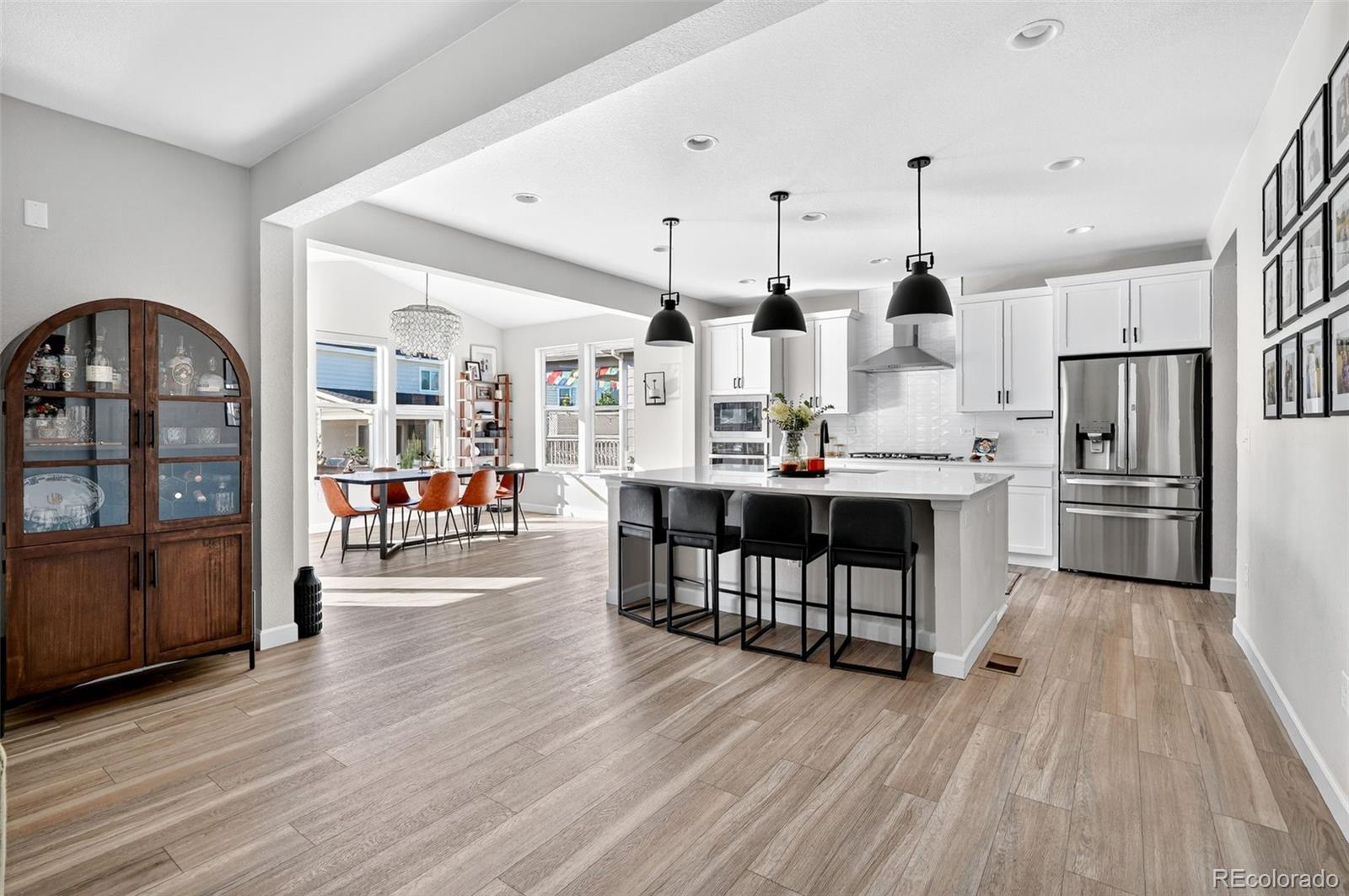 Set in the heart of Colliers Hill, this refined and move-in ready Hemingway model offers over 3,700 finished square feet of thoughtfully designed living space, blending elevated style with everyday functionality. The main floor features a private study framed by french doors and an open-concept layout ideal for entertaining, complete with a modern fireplace, upgraded designer lighting, and a sun-filled dining area that opens to the covered patio and fully landscaped backyard. The kitchen anchors the space with quartz countertops, stainless steel appliances, dedicated pantry storage, and a large center island perfect for hosting guests, casual family meals, and intimate dinners. Upstairs, you'll find a spacious loft, three well-sized secondary bedrooms, and a serene primary suite with a large, custom walk-in closet and private en-suite bath. The finished basement adds flexible living space with a dedicated media and recreation area, guest bedroom, and a full bath, offering comfort and privacy for visitors or multigenerational living. Located just steps from Colliers Hill's exceptional amenities- including two resort style pools, a state-of-the-art fitness center, clubhouse, miles of walking and biking trails, community parks, and top-rated St. Vrain Valley schools- this home offers the rare opportunity to enjoy a nearly new build with the added benefit of high-end finishes and a fully completed outdoor living space.