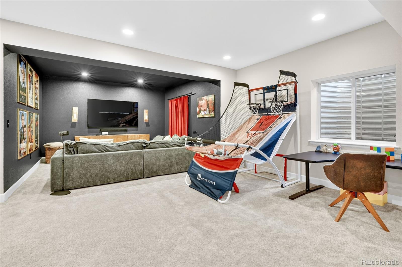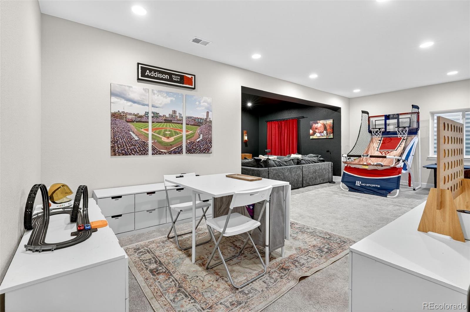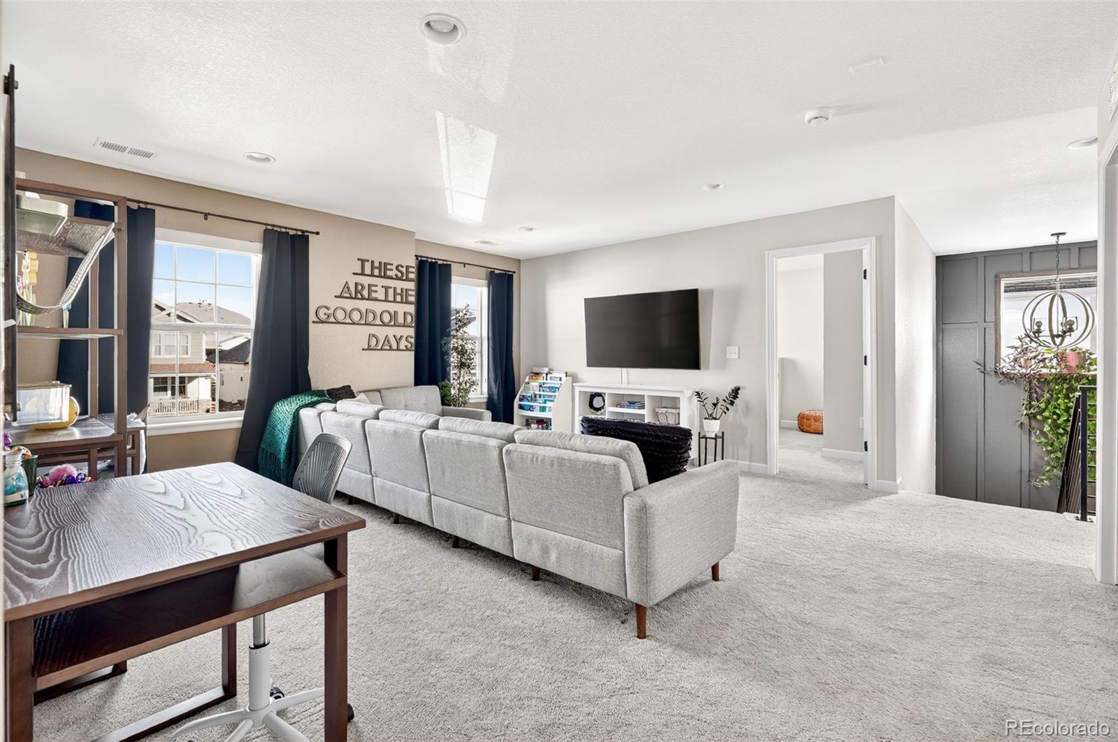 Set in the heart of Colliers Hill, this refined and move-in ready Hemingway model offers over 3,700 finished square feet of thoughtfully designed living space, blending elevated style with everyday functionality. The main floor features a private study framed by french doors and an open-concept layout ideal for entertaining, complete with a modern fireplace, upgraded designer lighting, and a sun-filled dining area that opens to the covered patio and fully landscaped backyard. The kitchen anchors the space with quartz countertops, stainless steel appliances, dedicated pantry storage, and a large center island perfect for hosting guests, casual family meals, and intimate dinners. Upstairs, you'll find a spacious loft, three well-sized secondary bedrooms, and a serene primary suite with a large, custom walk-in closet and private en-suite bath. The finished basement adds flexible living space with a dedicated media and recreation area, guest bedroom, and a full bath, offering comfort and privacy for visitors or multigenerational living. Located just steps from Colliers Hill's exceptional amenities- including two resort style pools, a state-of-the-art fitness center, clubhouse, miles of walking and biking trails, community parks, and top-rated St. Vrain Valley schools- this home offers the rare opportunity to enjoy a nearly new build with the added benefit of high-end finishes and a fully completed outdoor living space.