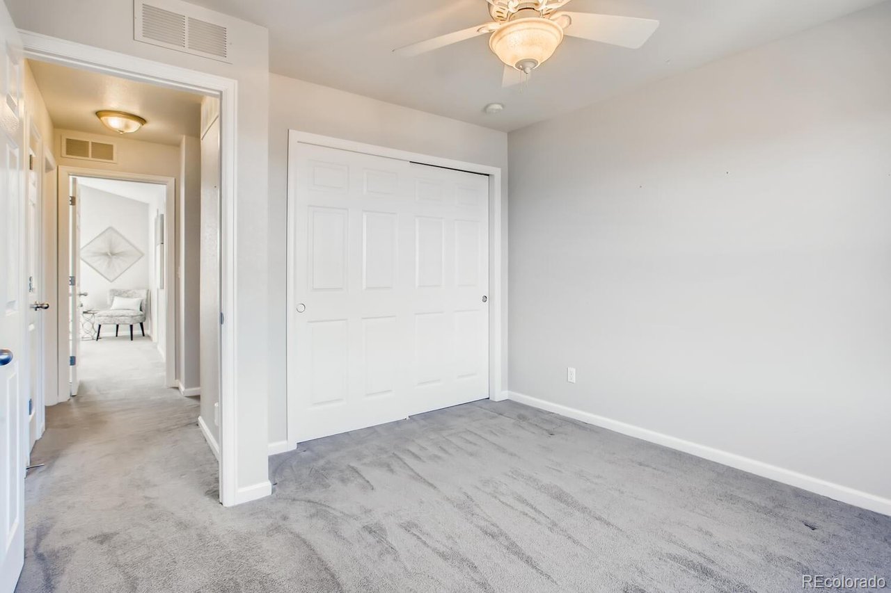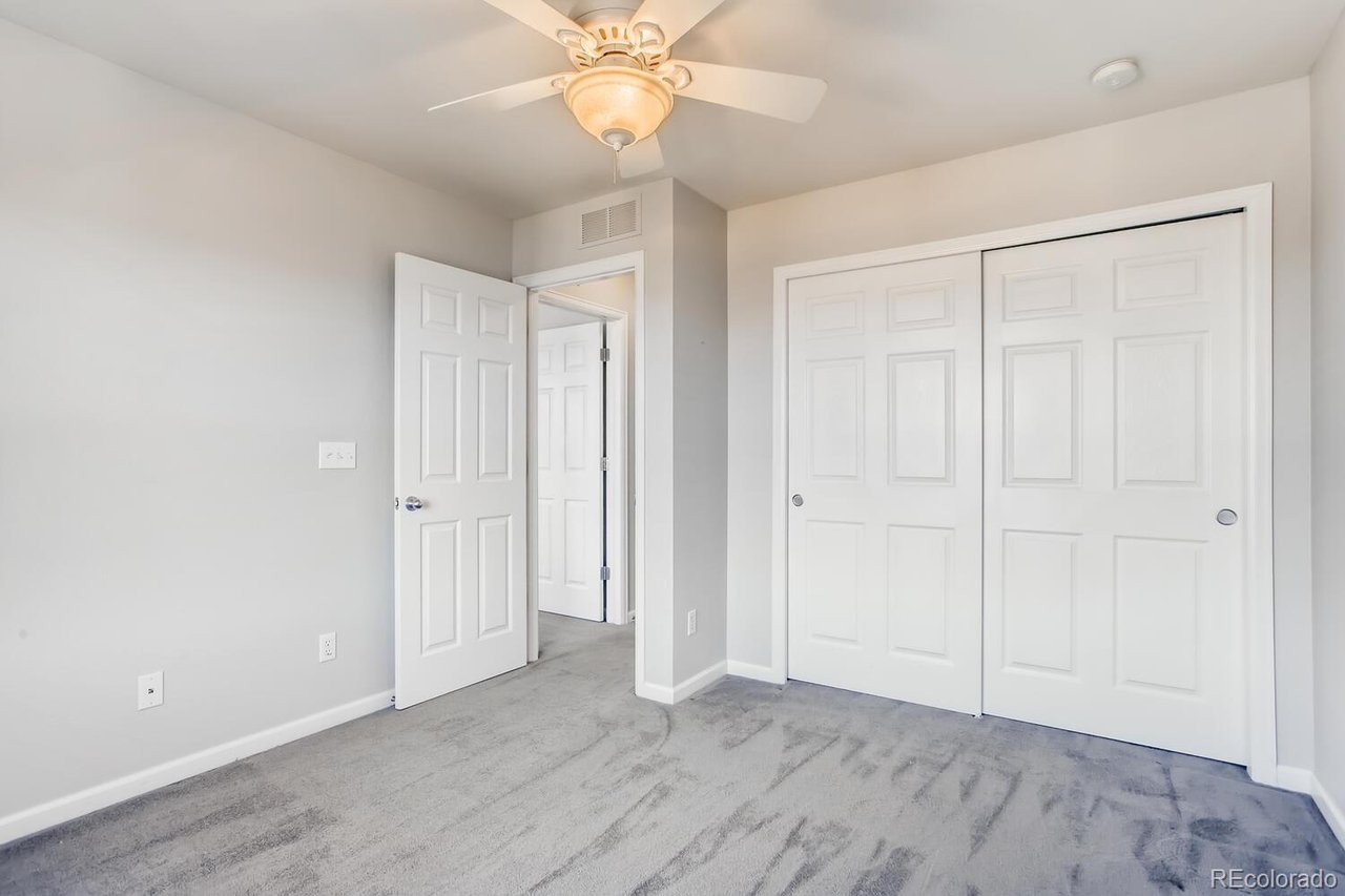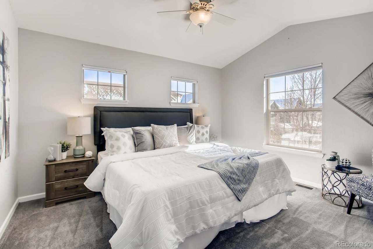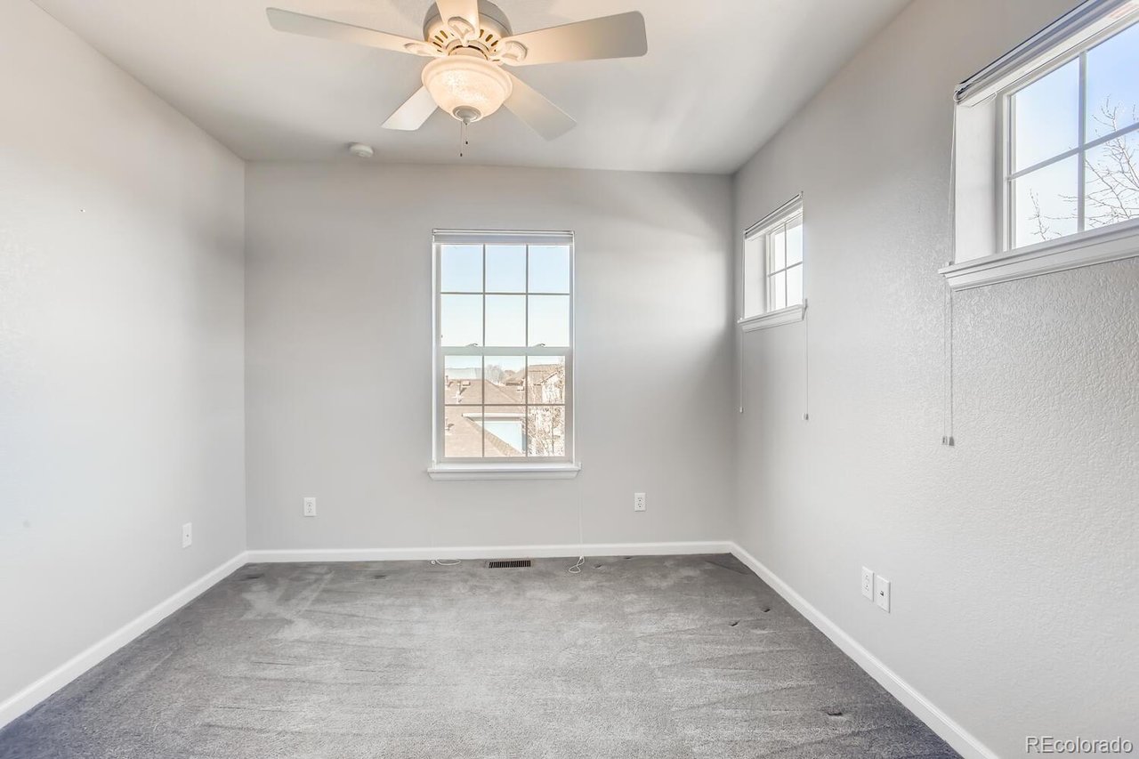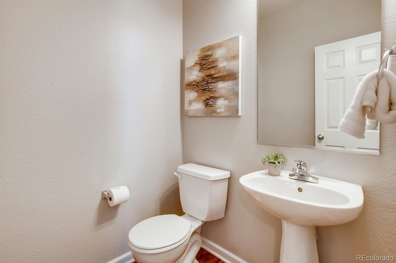 One of the best lots in Crescent Ridge at Lowry. Beautifully maintained and updated. Windows on the north, east and south flood all rooms with light. The main level welcomes you with a large open concept floor plan, perfect for entertaining. Gleaming hardwood floors throughout the main level. The second story has a spacious master suite with large walk in closet just down the hallway from two additional bedrooms and bathroom. Brand new carpet throughout the upper level is plush and soft. This home lives like a single family detached house, it has been exceptionally well kept, freshly painted, and is ready for its new owners. Enjoy your charming front porch one block from Crescent Park and minutes from the Lowry Town Center. Attached two car garage and an excellent HOA that maintains the beautiful landscaping.