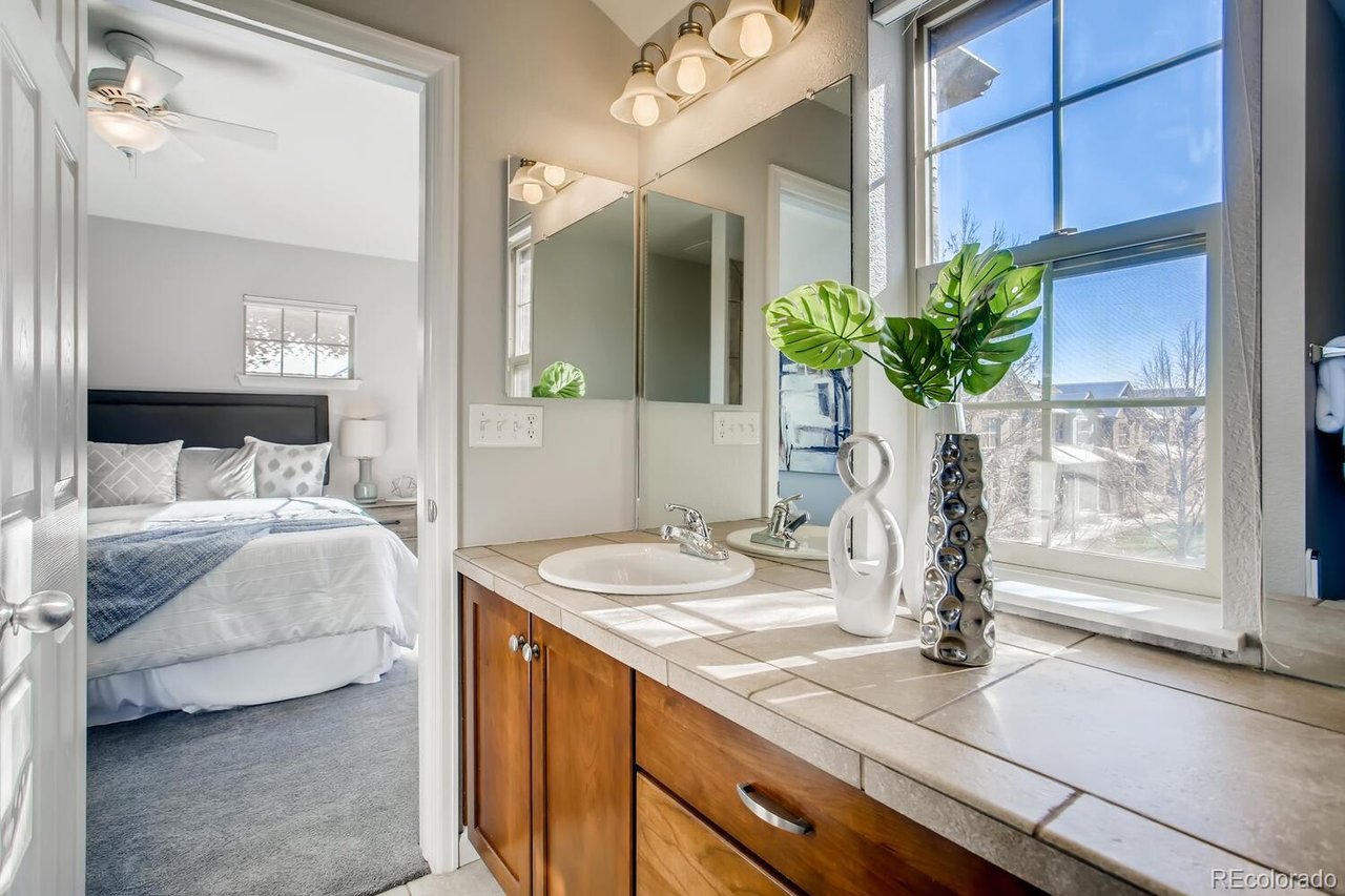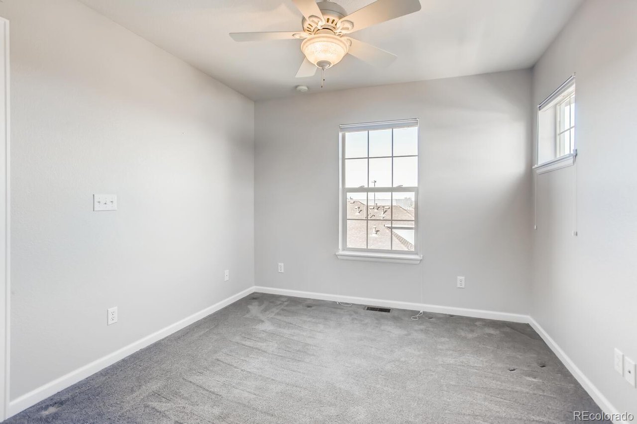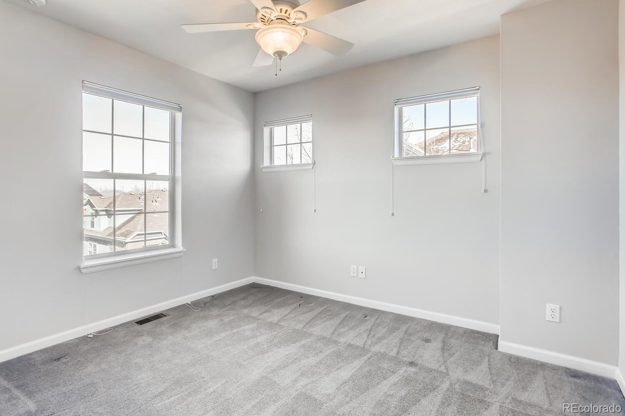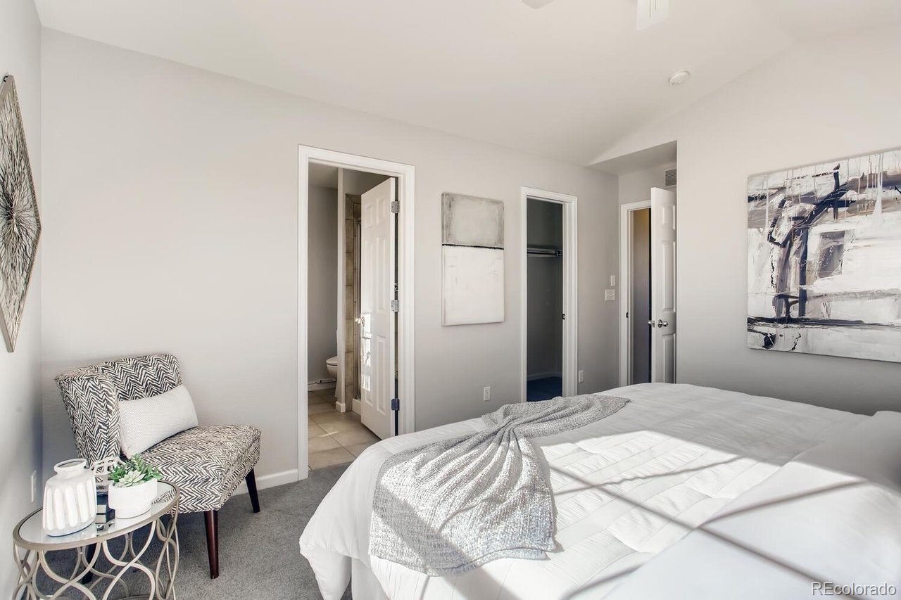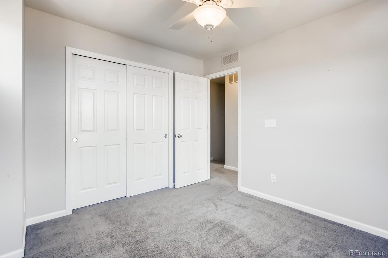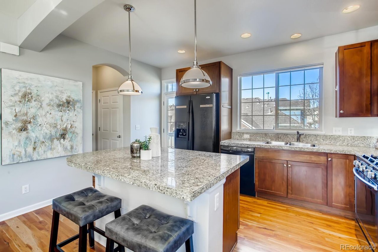 One of the best lots in Crescent Ridge at Lowry. Beautifully maintained and updated. Windows on the north, east and south flood all rooms with light. The main level welcomes you with a large open concept floor plan, perfect for entertaining. Gleaming hardwood floors throughout the main level. The second story has a spacious master suite with large walk in closet just down the hallway from two additional bedrooms and bathroom. Brand new carpet throughout the upper level is plush and soft. This home lives like a single family detached house, it has been exceptionally well kept, freshly painted, and is ready for its new owners. Enjoy your charming front porch one block from Crescent Park and minutes from the Lowry Town Center. Attached two car garage and an excellent HOA that maintains the beautiful landscaping.