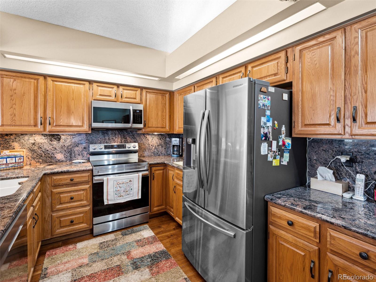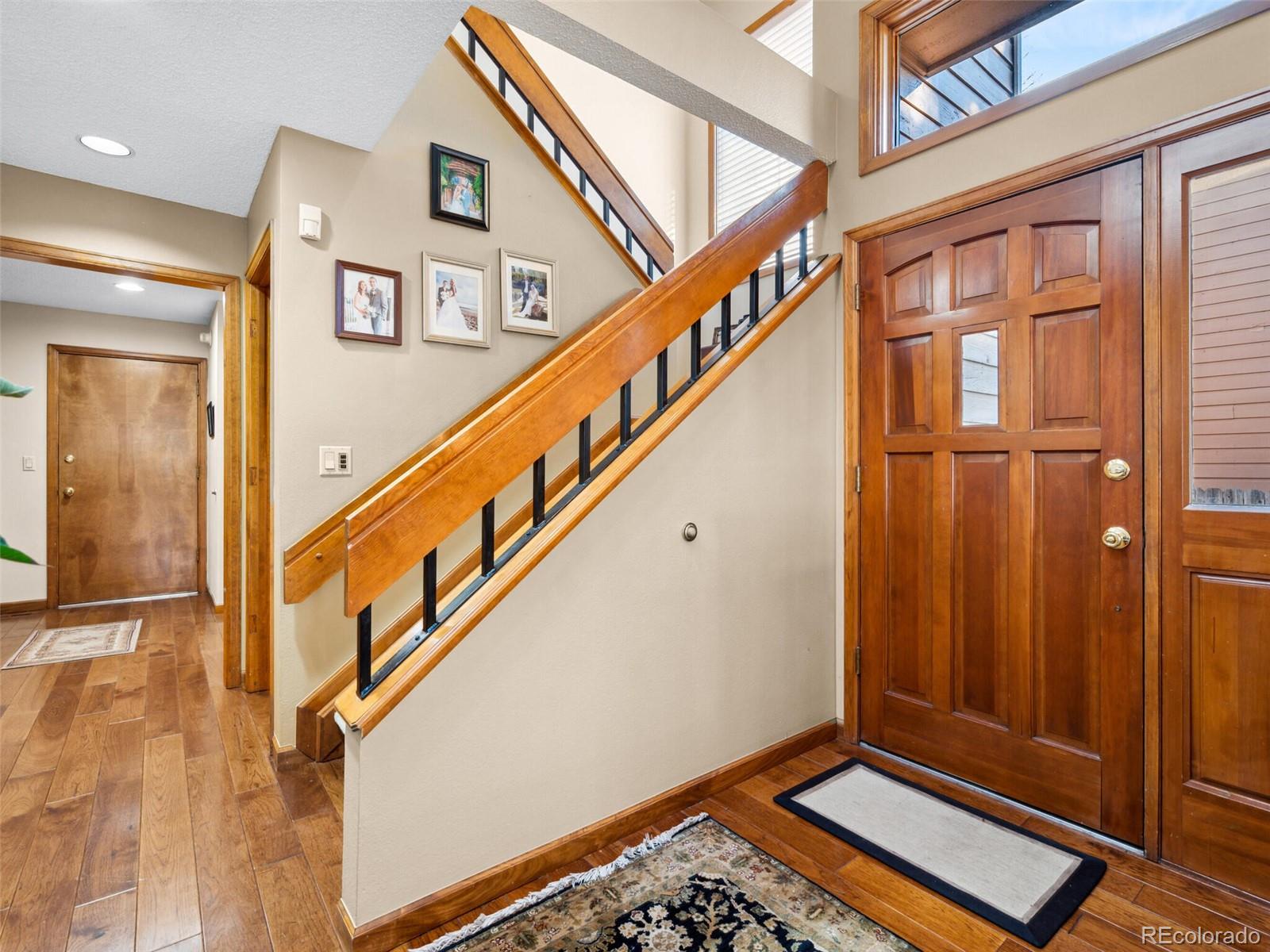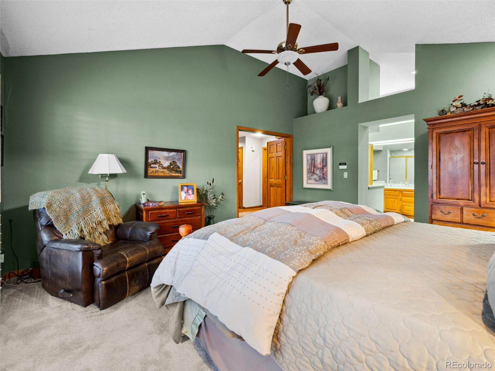 A classic, lovely, and beautifully maintained home in the desirable Tamarac Hills community. It's a spacious 2-story home with a finished basement and a MAIN FLOOR PRIMARY BEDROOM with 5-piece bath. Enjoy your morning coffee and personal time in the very private patio off the primary bedroom. * You'll love the wide-plank real wood flooring in most of the main floor, and quality carpet elsewhere. * The laundry and a half-bath are in a hallway across from the primary bedroom. * The main floor also has a dining room/living room area with gas fireplace and an equally large great room holding the updated kitchen/family room/breakfast nook. * From there access the 16'x23' deck and backyard. * It's a patio home, so the yard does not require much maintenance other than your own flowers. * Vaulted ceilings, a skylight, and a wall of windows makes it very light and open. * Plantation shutters throughout the main level add beauty and privacy when desired. * A small loft with built-in shelves and a desk, along with two good-sized bedrooms and a Jack and Jill bath complete the upstairs. * The completely finished basement has a large bedroom with egress window and a huge closet that has been used as an office. * Check out the storage shelves on rails that give extra storage area without taking up more space. * The bonus room has room for multiple activites and could easily be an apartment for adult children or other family members. It has a small sink, a mini-refrigerator, and a counter-top microwave. * Another finished bonus room is also used for storage. * * Access to the Front Door and the back yard is on the south side of the house--very private. * The owner replaced the roof last Fall. * The HOA has a pool & tennis/pickleball court, and maintains the front yard. They paint the house every 5 years (2023 was the last time for this home. * The 2-car garage has a workbench and multiple cabinets for storage. A small storage shed holds garden tools.